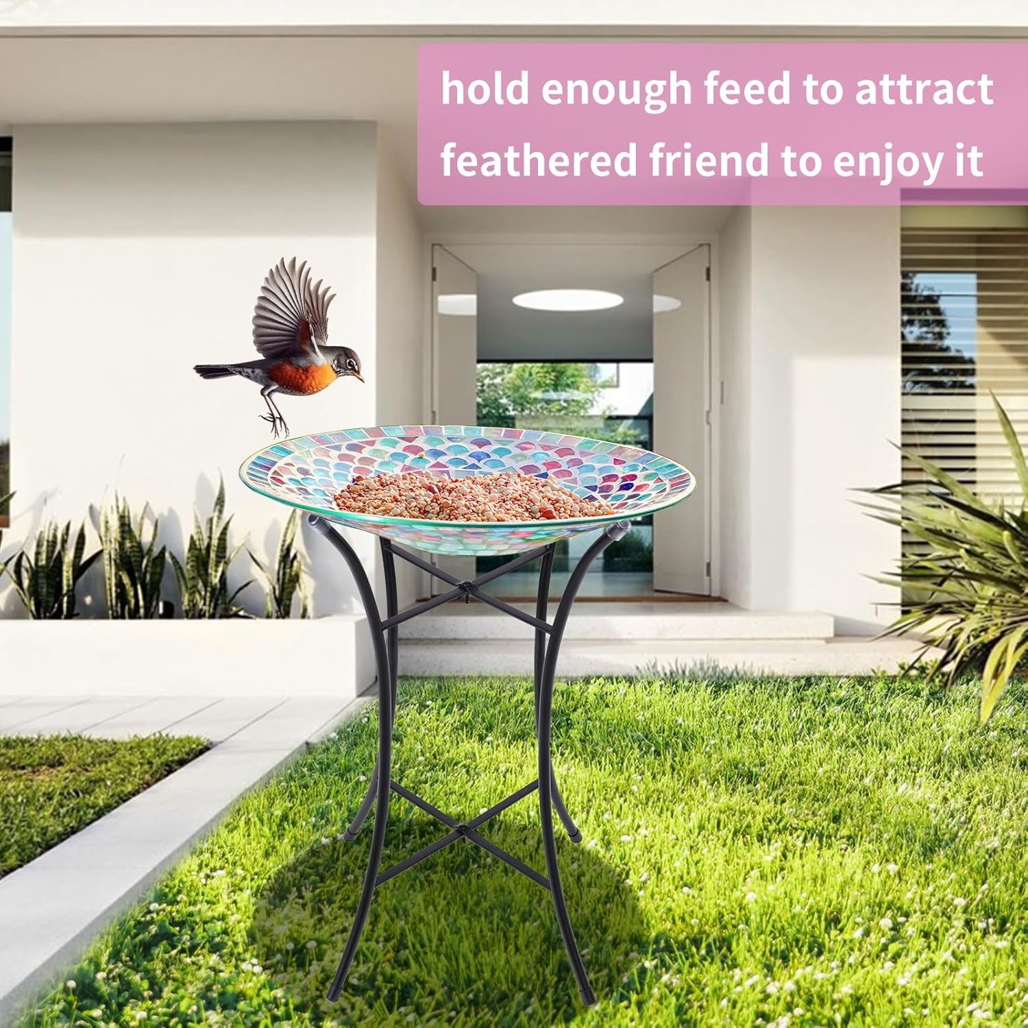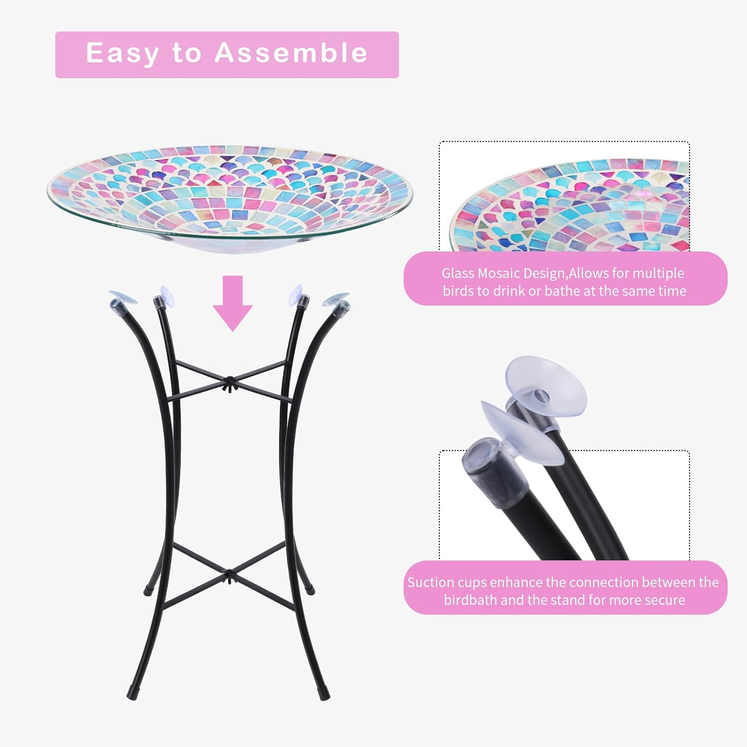 - Best Gift: Looking for the perfect gift for nature and bird enthusiasts? Our mosaic glass bird bath is both a beautiful ornament and a functional bird bath and feeder. It's an attractive addition to any garden, sure to delight any recipient