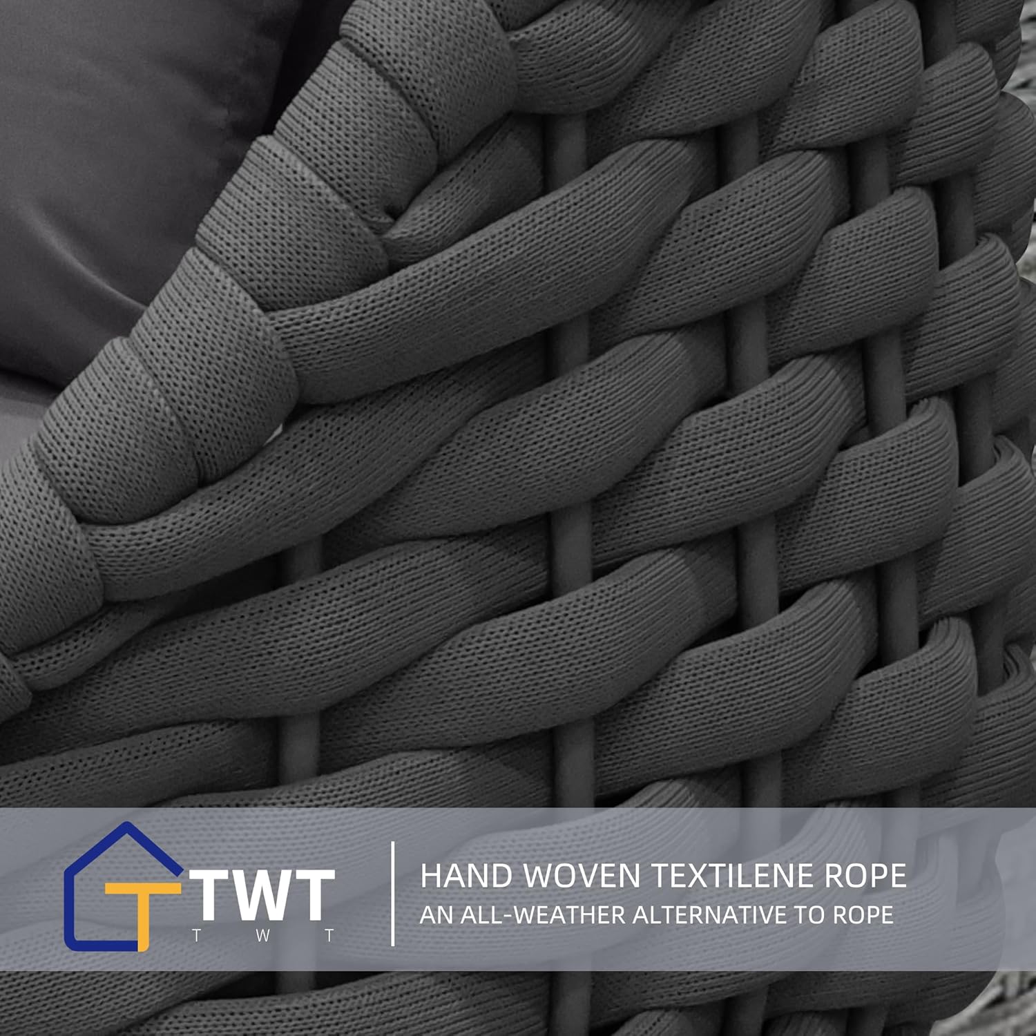 TWT Patio Furniture Sofa Set 4 Pieces Aluminum Outdoor Furniture w/27.8in Coffee Table,Patio Conversation Set with Hand Woven Textilene Rope for Backyard Garden Poolside,Dark Gray