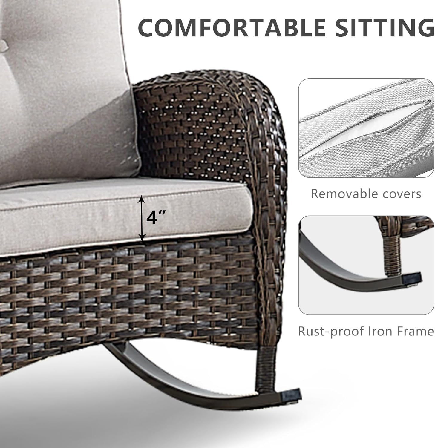 - Ergonomic Design:Added more comfortable support with the ergonomic high backrest and wide armrests design.Deep and wide seats with 4-inch thick sponge-padded cushions.Offers good resilience, not easy to deform or slide,for relaxing lumbar and added comfort and coziness.