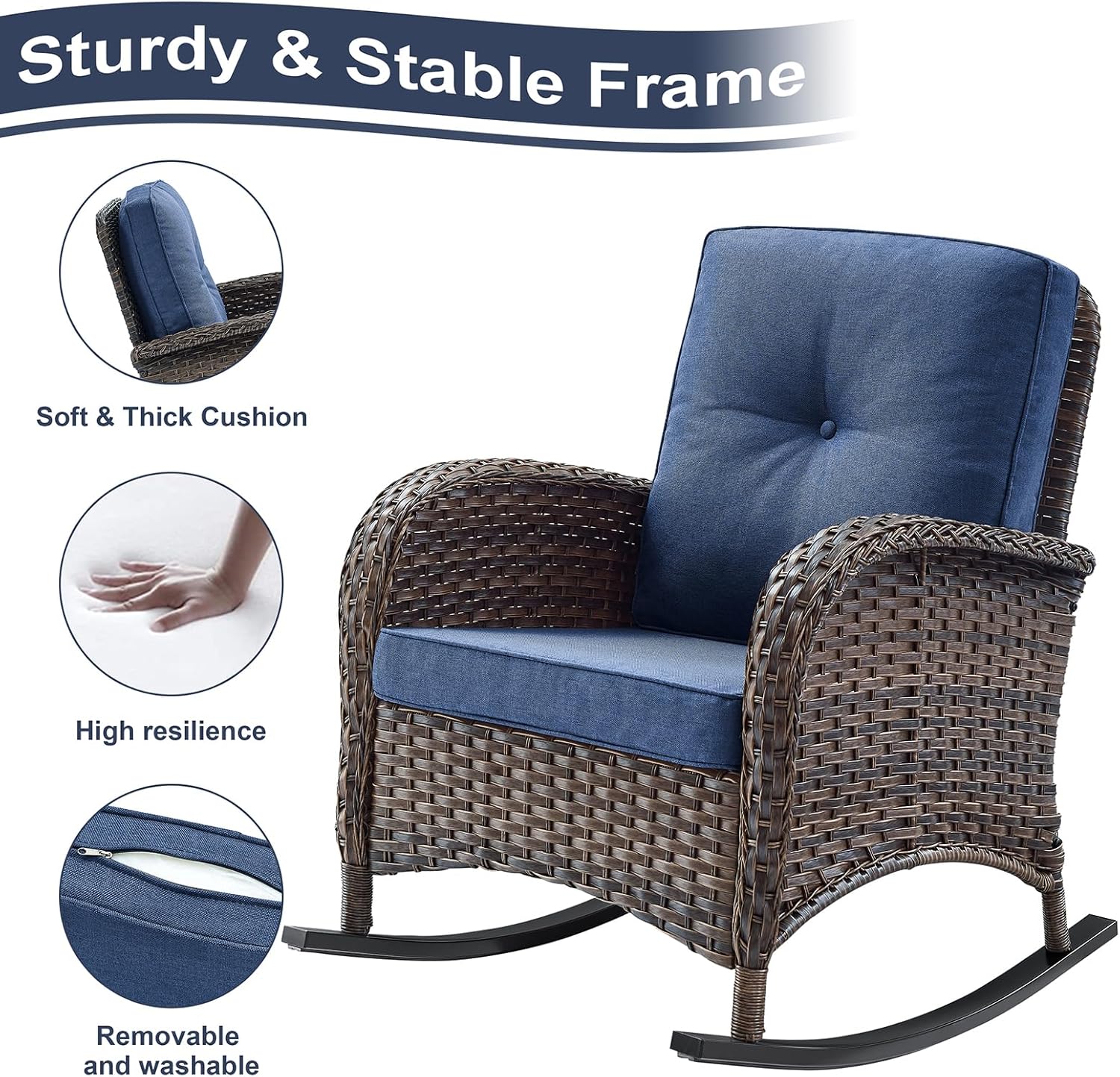 - Swivel Rocking Chairs:Resting on chairs with sturdy round metal base allows to glide gently and swivel 360Β° for relaxing, with seat and back cushions contribute to comfortable support, making the outdoor set a perfect addition to transform your patio.