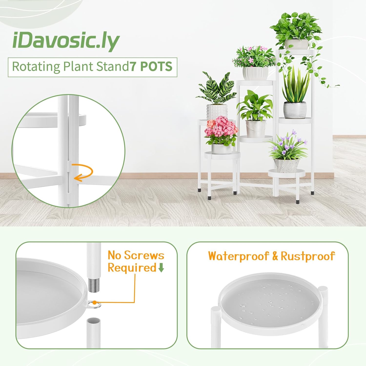 iDavosic.ly Plant Stand Indoor Outdoor, 7 Tier Corner Metal Flower Display Holder Shelf, Folding Tall Orchid Rack for Patio Balcony Porch Garden Living Room House, White