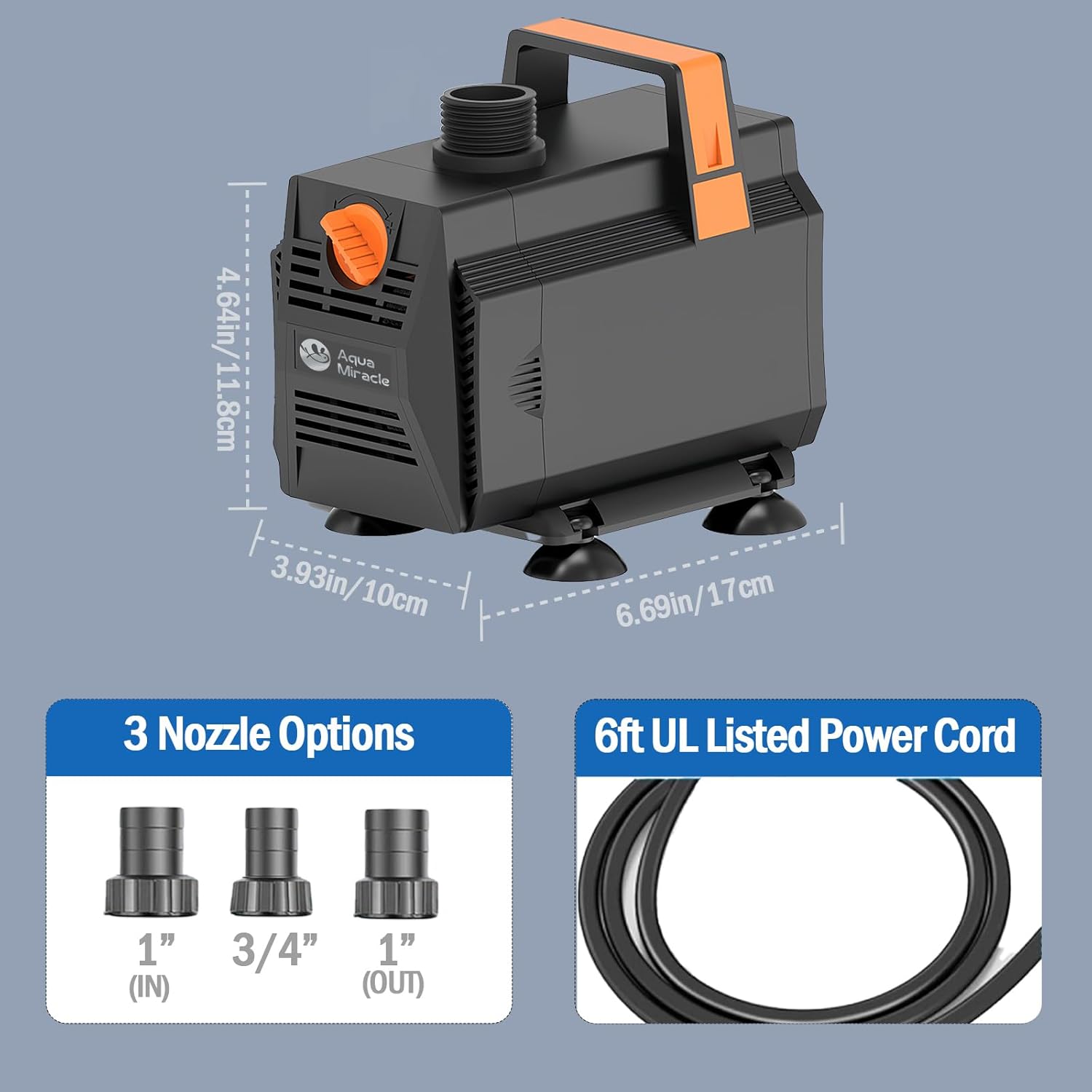 AquaMiracle 1200GPH Submersible Water Pump Pond Pump(4500L/H, 70W), Water Fountain Pump Aquarium Water Pump with Flow Control for Fish Tank, Waterfall, Statuary, Filtration, Water feature, Hydroponics