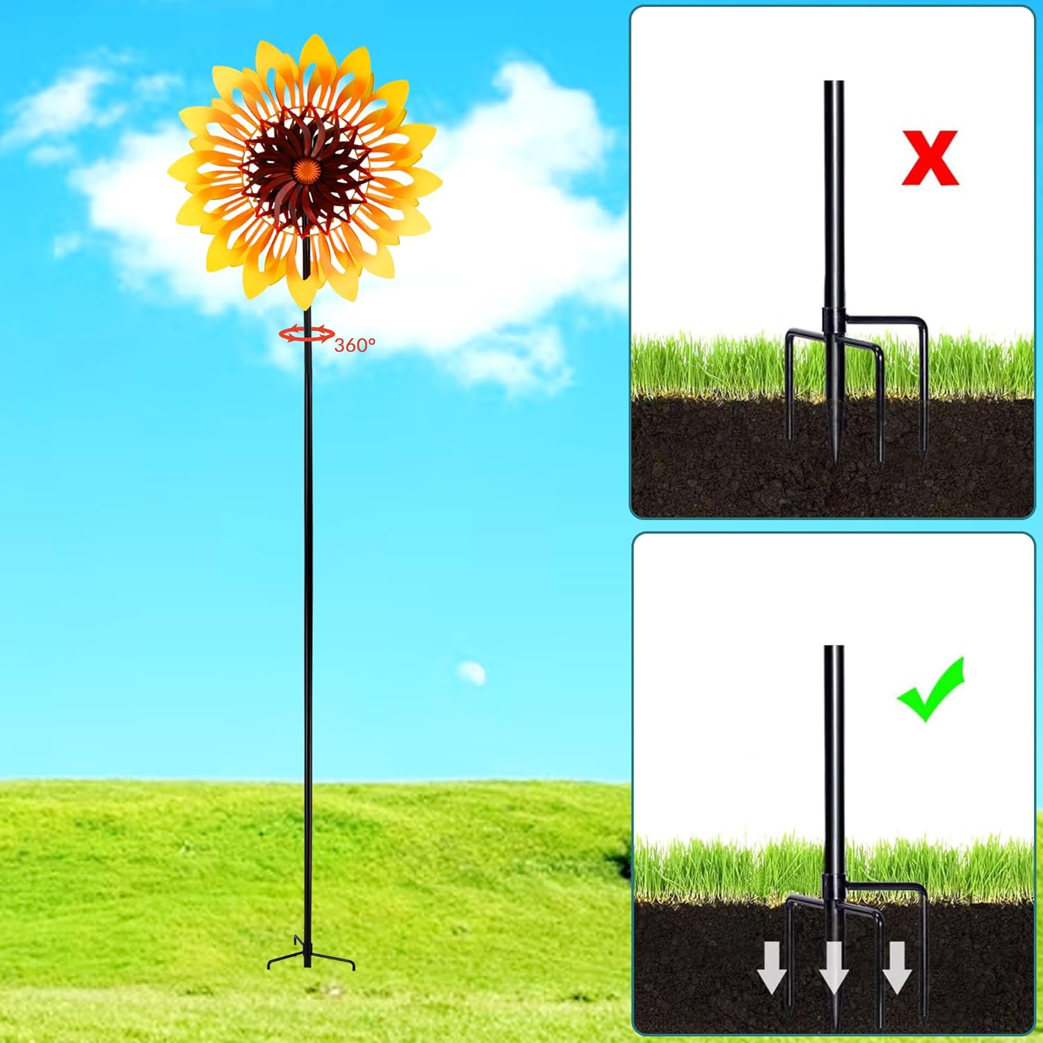 - 【Stable Structure】With a stable prong base design, simply insert the garden wind spinner into the soil or grass to maintain stability, even in strong winds.