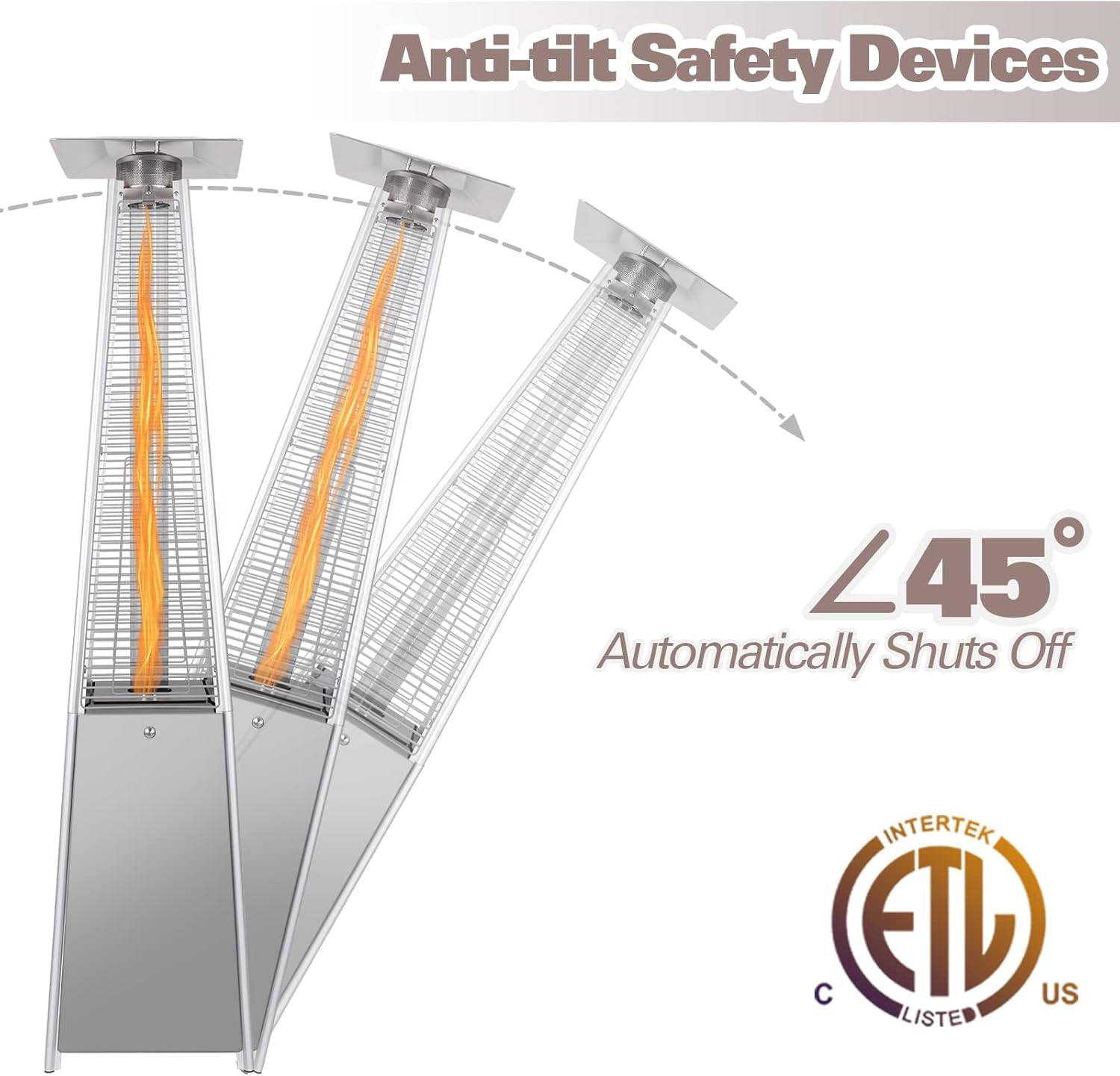 - Good Protection: The outdoor propane heaters for patio has anti-tilt safety devices, which will automatically shuts off the heater when tilted over 45 degrees. Waterproof cover can protect the heater in bad weather or when not use and extend life.