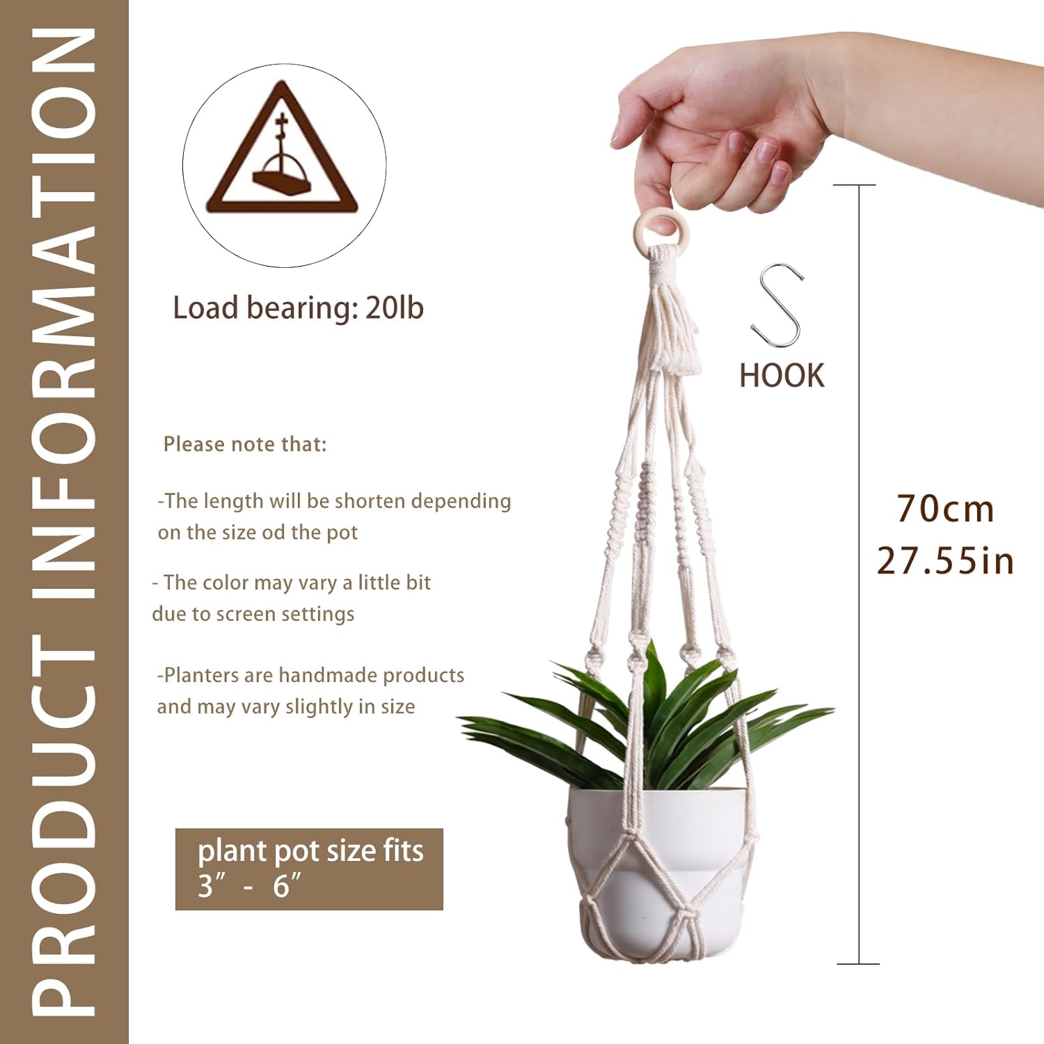 - HANDMADE WEAVING CRAFT - Hanging plant holder made from eco-friendly cotton rope and woodedl ring, It has a strong flexible woven design, sturdy and durable, enough to hold the weight of the pots, not easy to break, you can take them home for your plants with confidence