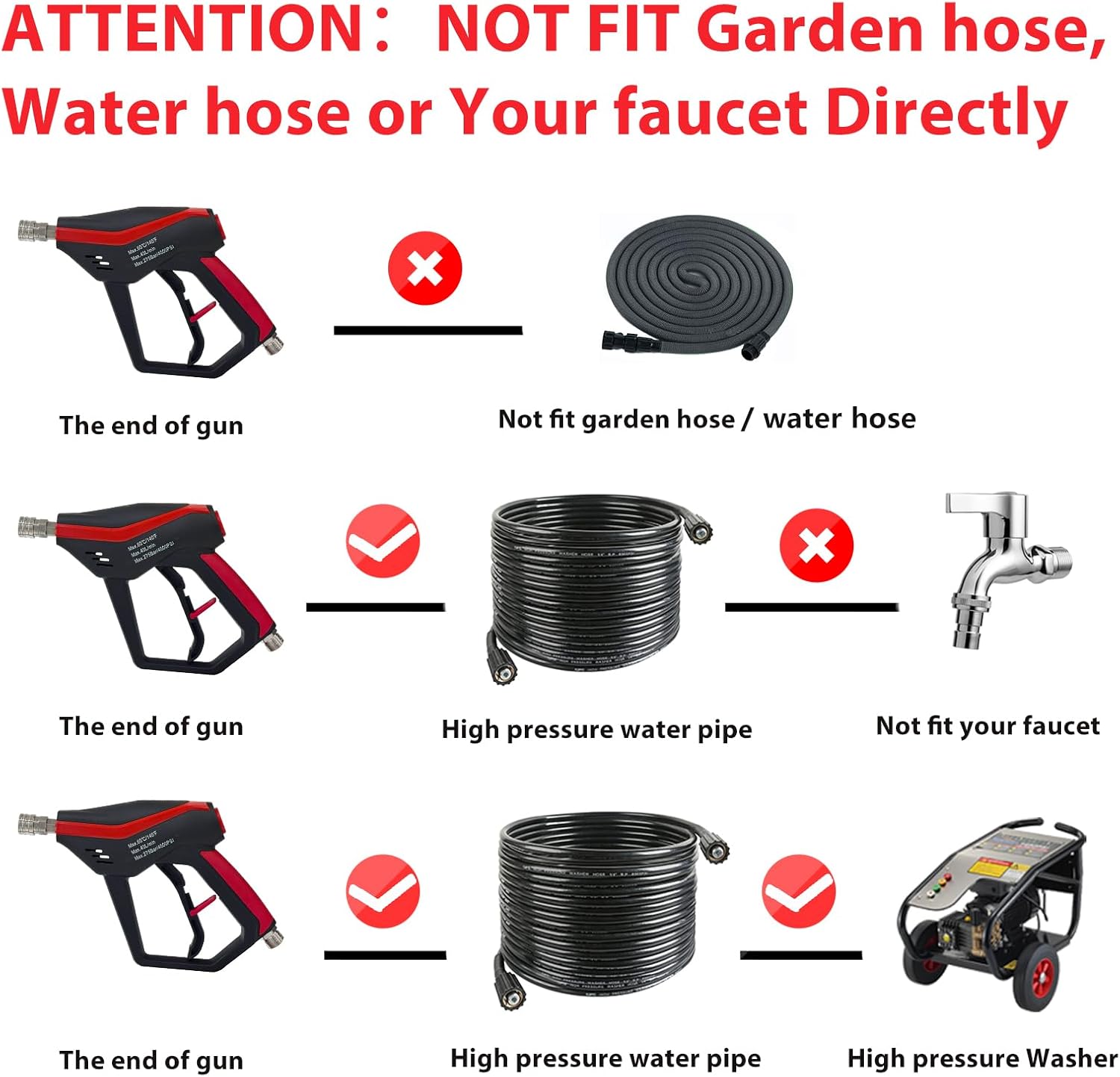 - ❀【Attention】Not Fit GardenHose, WaterHose or YourFaucet Directly, it must be connected to the hose of the high pressure washer before it can be used normally.
