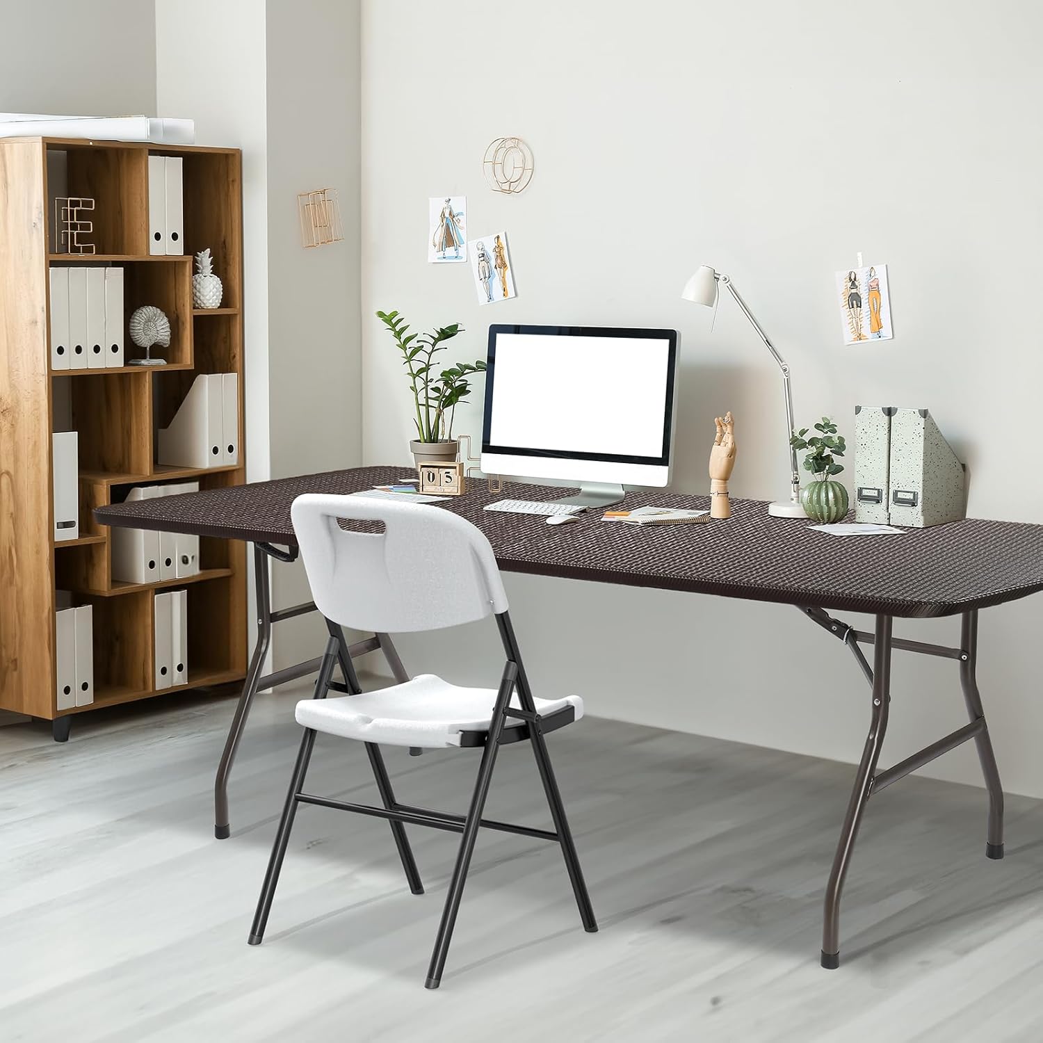 VINGLI 6 Foot Plastic Folding Table Portable Long Table for Indoor Outdoor Use Rectangular with Carrying Handle,Rattan Patterned HDPE Tabletop, Brown