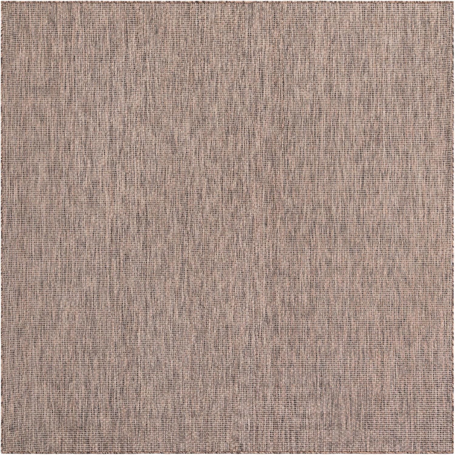 Unique Loom Outdoor Solid Collection Area Rug (7' 10" Square Light Brown/Ivory)