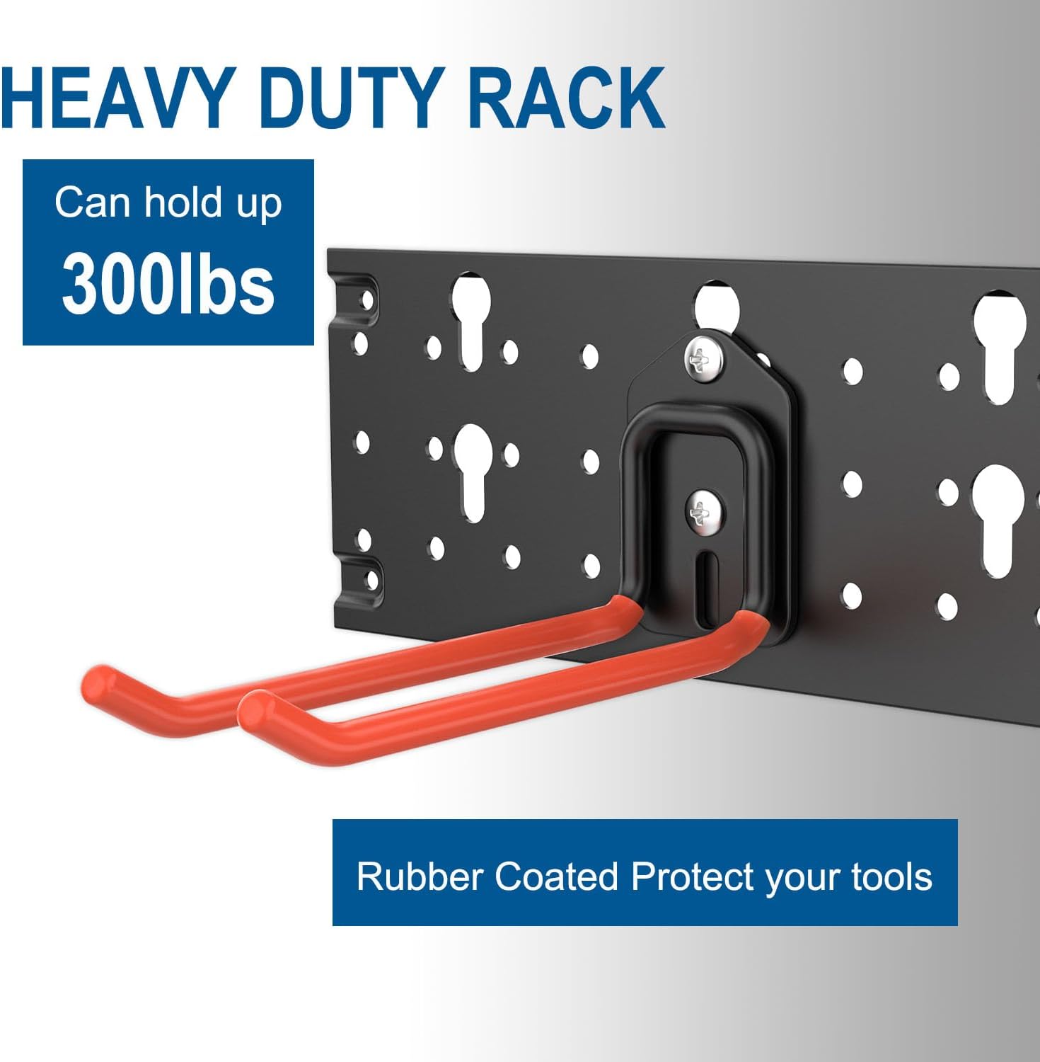 - DURABLE DESIGN: Crafted from heavy-duty steel, our chair hook is built to last. With as capacity of up to 300 lbs and rubber-coated sleeves for protection, it securely holds everything from Garden tools to power tools while preventing scratches and slippage.