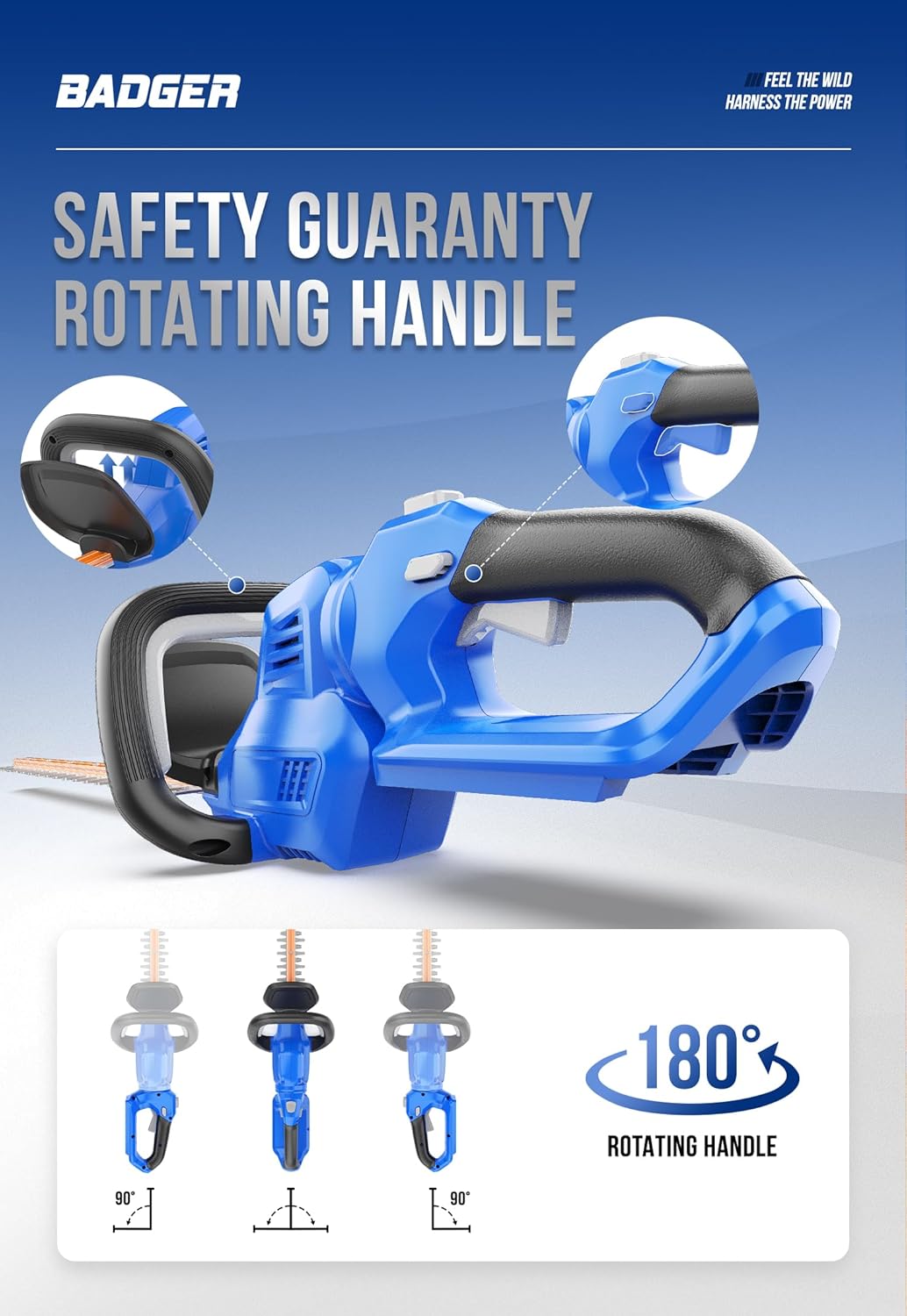 WILD BADGER POWER Hedge Trimmer 40V 24” Cordless, Powerful Electric Hedge Trimmer, 2.0Ah Battery and Charger Included