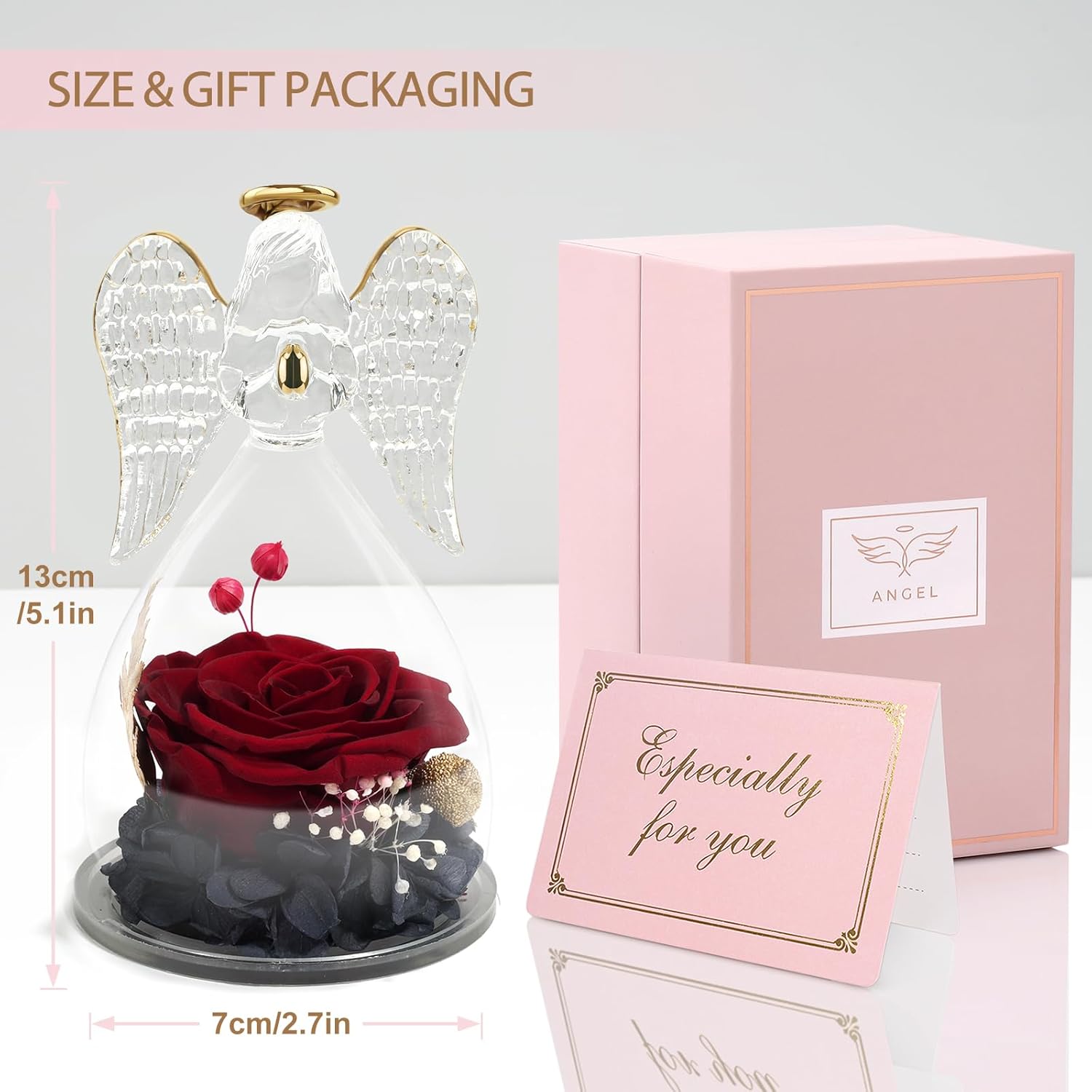 - Our angel figure forever real rose is made with unique preservation process, which can last 3-5 year, you just need to put the angel preserved flowers rose gift in a cool place, no need watering and sunlight.