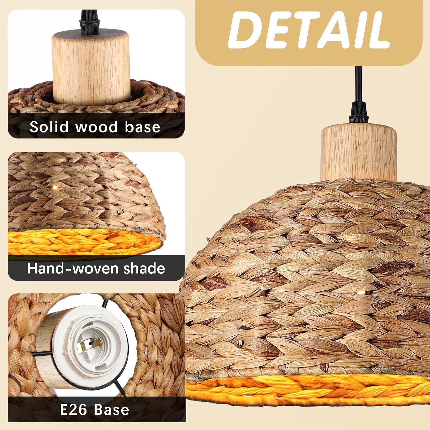 - ⭐【Wide Application】This rattan pendant light is made of delicate rattan woven, high-quality wires and thickened ceiling panels, which is perfect for farmhouses, dining rooms, kitchens, living rooms, bedrooms, hallways, cafes, bar, entryway, etc.