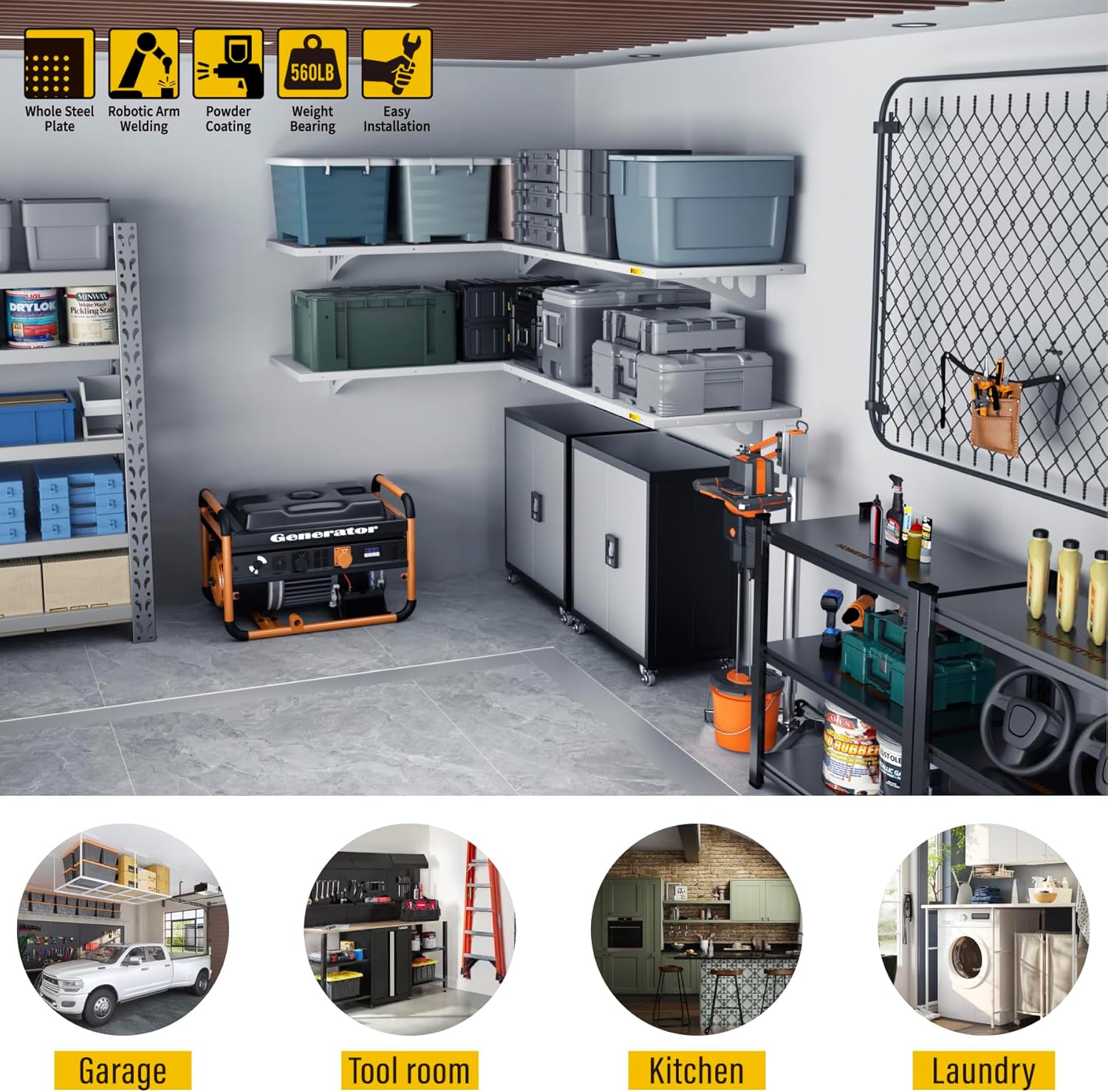 4Pack 1.64x4ft Adjustable Metal Garage Wall Shelving Heavy Duty Garage Storage Shelf Wall Mounted White