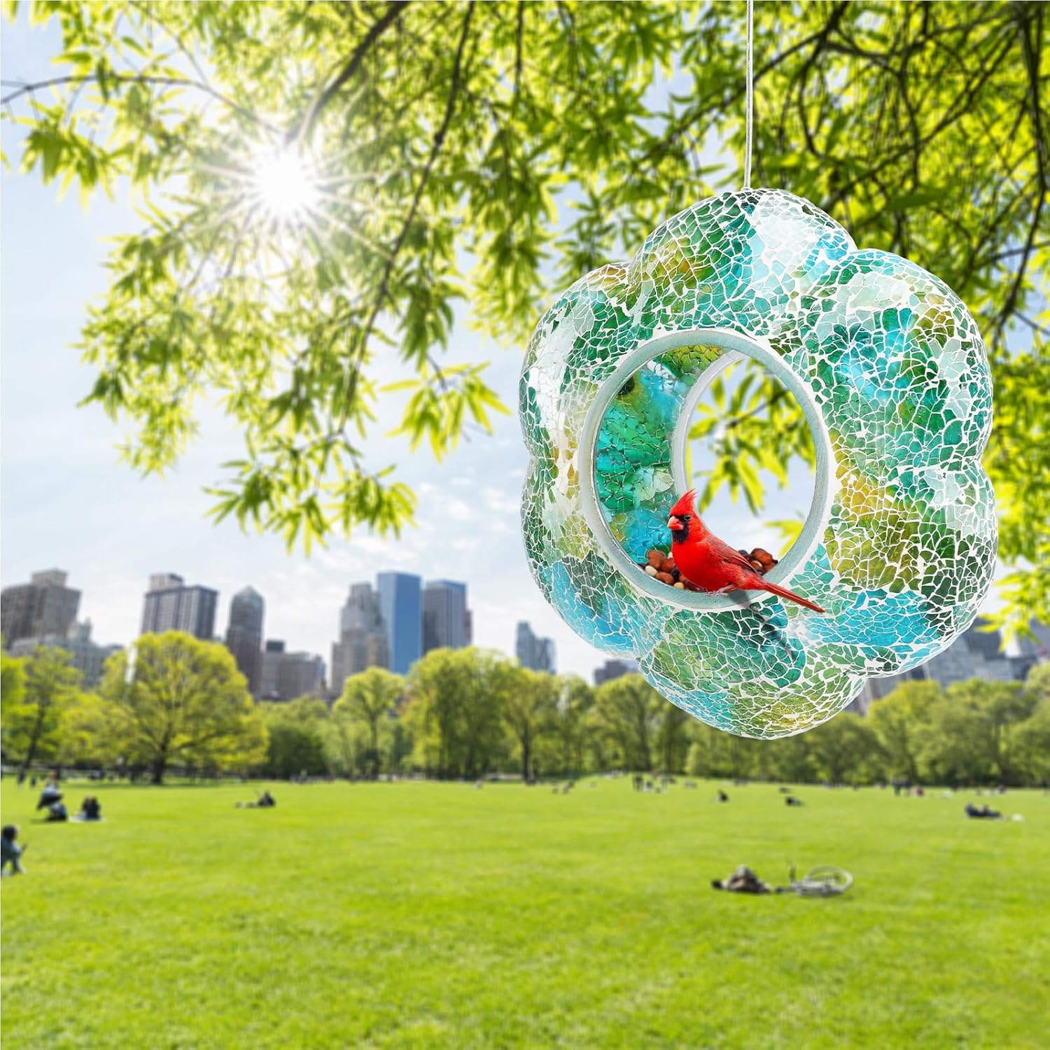- 【Hanging Bird Feeder】Mosaic hang bird feeders for outdoors is made of strong mortar and glass. Birds can eat from the rim or hop inside during bad weather