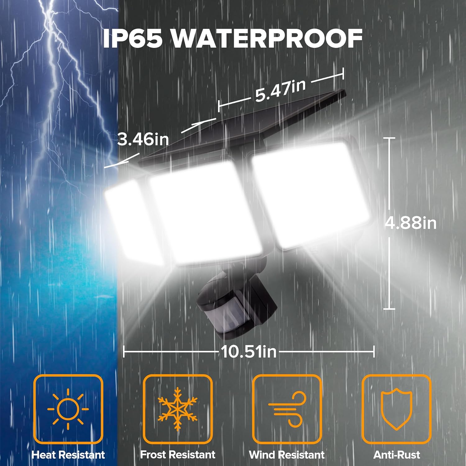 - 【302 Ultra-Bright LED & Wide Angle Illumination】With 302 ultra-bright LED, the solar flood light emits a powerful 3000 lumen warm white light (7000K color temperature). The three adjustable heads ensure flexible angle adjustments, ensuring a wide coverage of up to 270 degrees, effectively illuminating larger outdoor spaces.