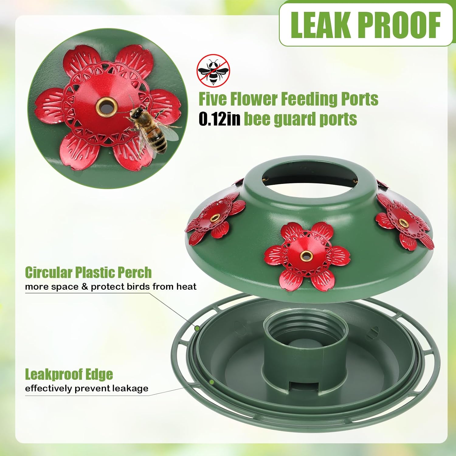 - Ample Feeding Space: Five flower shape feeding prorts are perches arranged in a circular manner for several humming birds dine and rest at the same time; Upgraded glass hummingbird feeder with 22 oz nectar capacity have perfect size to keep nectar fresh