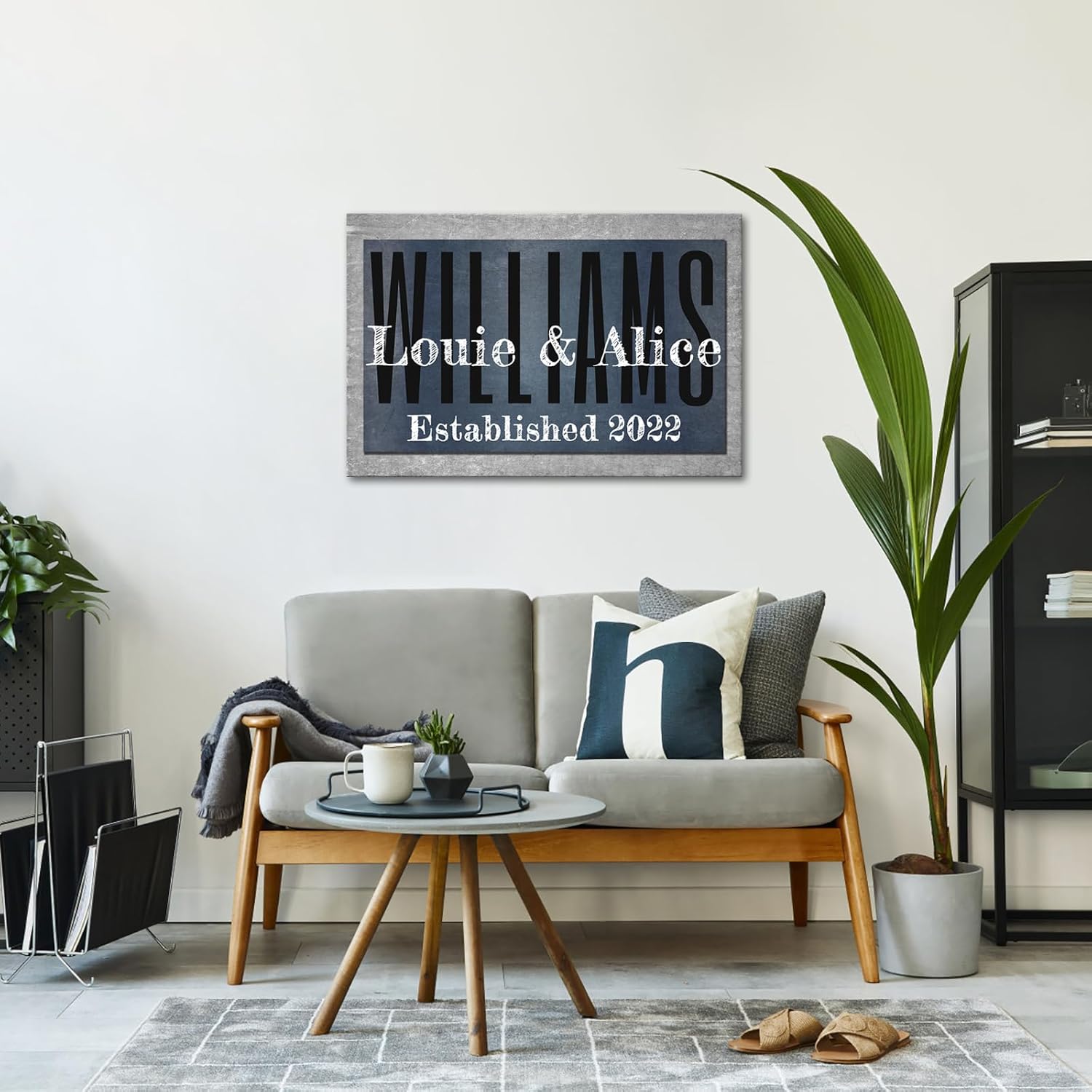 iLOOKLiKE Personalized Last Name Signs with Couple's Names Wall Art Custom Family Established Date Canvas Prints Framed Unique Wedding Anniversary Housewarming Gifts for Home Decor 16×24inch