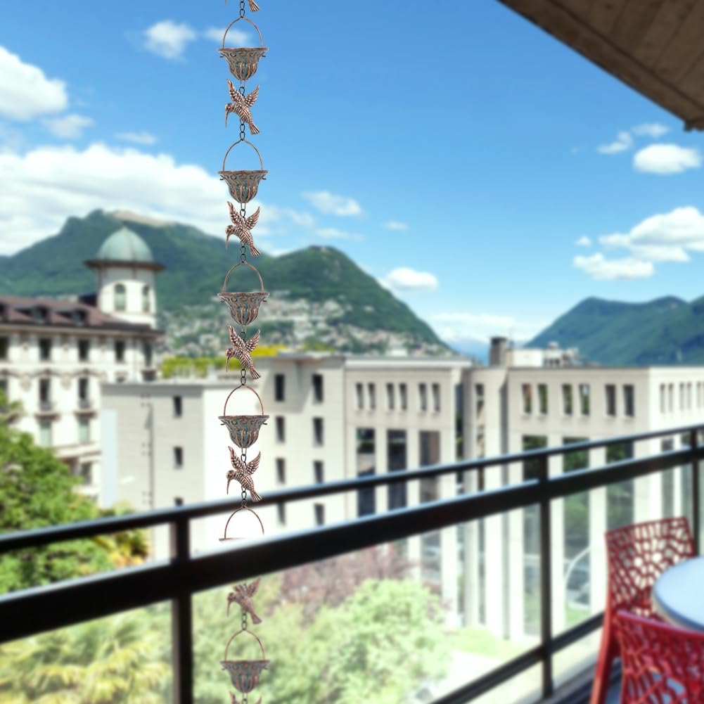 - Unique Design: The rain chains for gutters is designed with 12 handmade cups and detachable metal hummingbird decorations. The vintage look adds a chic touch to roofs and awning dens. An elegant alternative to traditional gutter downspouts