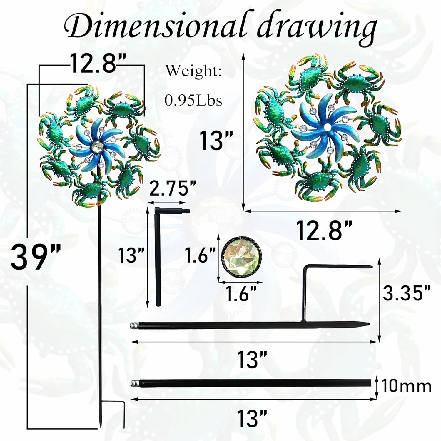 - 🦀【Product Description】This is a single sided metal sea crab wind spinner stake,accessorize with metal flowers and acrylic beads,It makes for a perfect wind spinner stake,this is an excellent choice for decorating the ocean theme lawn and garden.