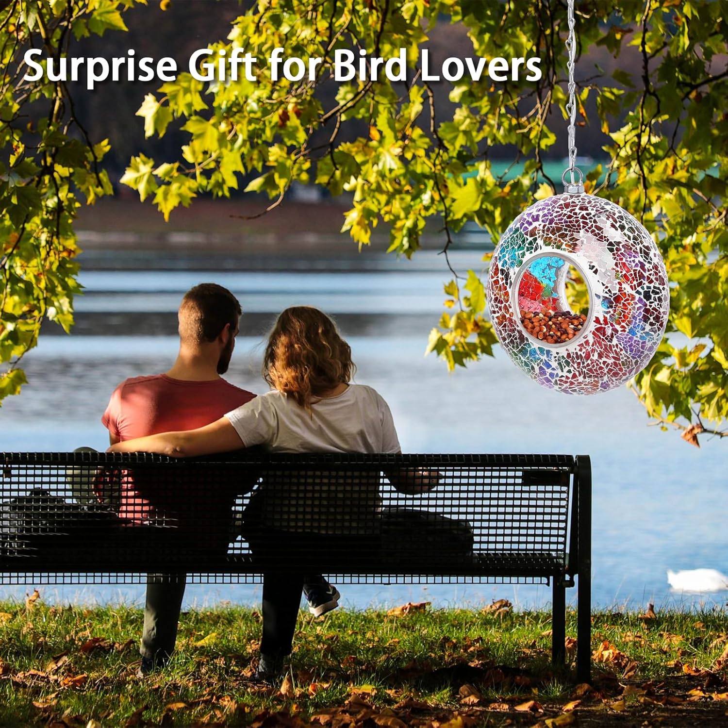 - 【Hanging Bird Feeder】Mosaic hang bird feeders for outdoors is made of strong mortar and glass. Birds can eat from the rim or hop inside during bad weather.