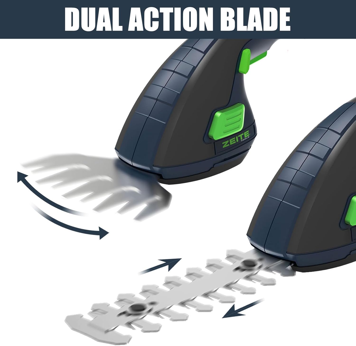 - RECHARGEABLE BATTERY & EASY TO USE:Zeite 7.2V cordless mini grass shear & shrub trimmer equipped with a Lithium rechargeable battery.You could take this versatile tool to anywhere in your garden without the lying wires.Tool-less blade changing makes operation quick and easy, fits into different demands