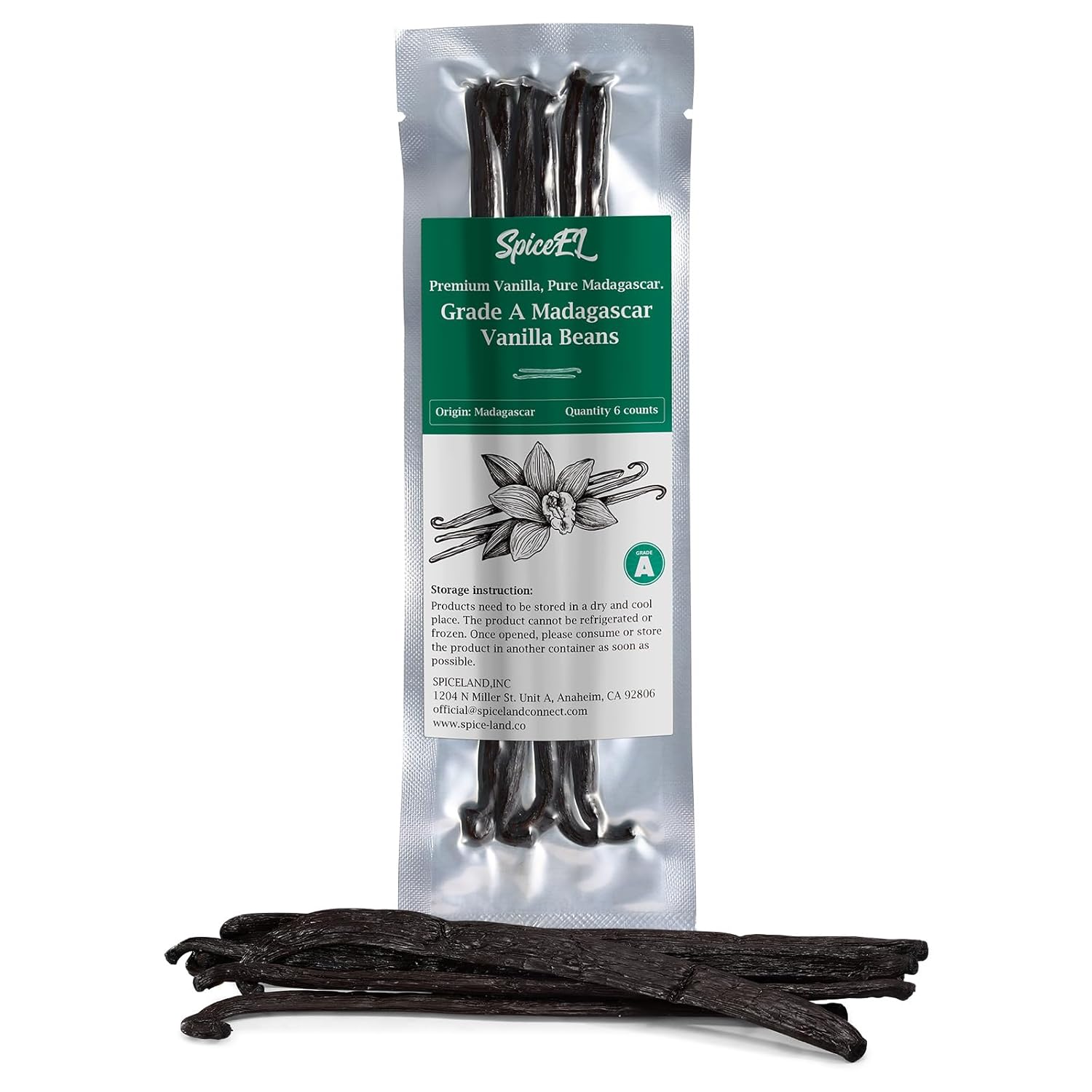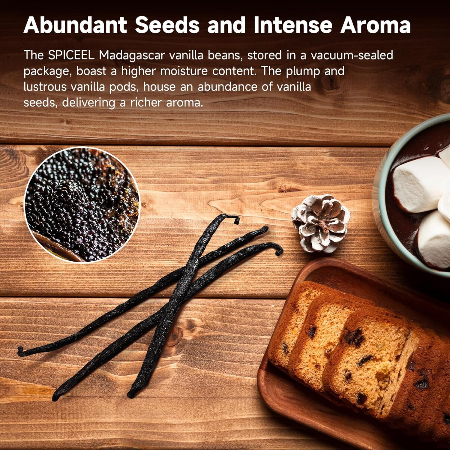 SPICEEL Madagascar Vanilla Beans Whole Grade A Vanilla Pods for Making Extract, Whole 5" - 7" Vanilla Beans for Baking, 6 Counts