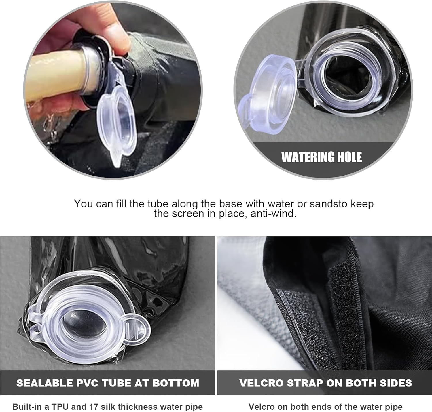 - 【Zipper & Tube】- The double-sided zipper allows for easy access as it can be zipped from both side. The sealable PVC tube at bottom can be filled with water to hold the filter in place in the wind.