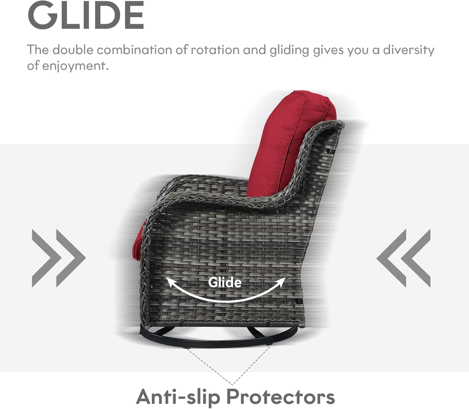 - Marvelous Design: The base of the swivel rocker chair is a dual-function disc base that can rotate 360 degrees and also glide back and forth. The rocking design helps you sit more easily and comfortably, with a non-slip pad added to the base, the operation will be smooth and stable, and you don't have to worry about the chair tipping backwards at all.