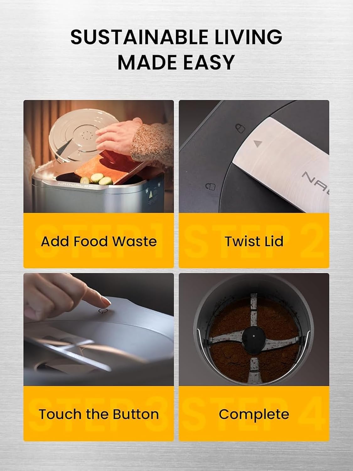 - đ ïžă How Nagual Composter Worksă â Simple 1-Button Operation â Just add your food scraps into the can, close the lid, and press the button. In just 2 hours, the Nagual Electric food waste shredder dries, grinds, and transforms kitchen waste into nutrient-rich soilâfast, clean, and hassle-free.