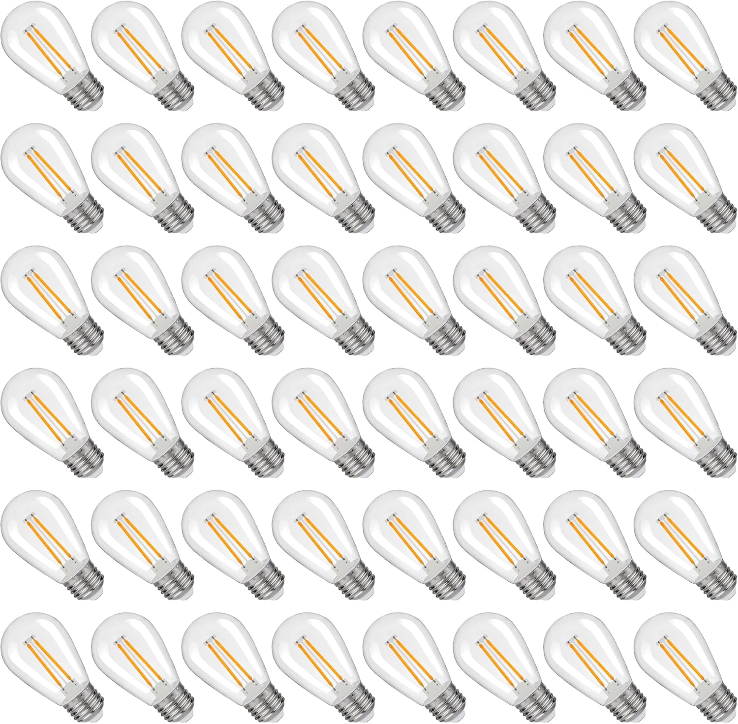 S14 Replacement LED Light Bulbs, Shatterproof & Waterproof 2W S14 LED Bulbs, Outdoor String Lights , E26 Base Patio Edison LED Light Bulbs, Warm White 2200K Plastic 150ML Non-Dimmable 48 Pack