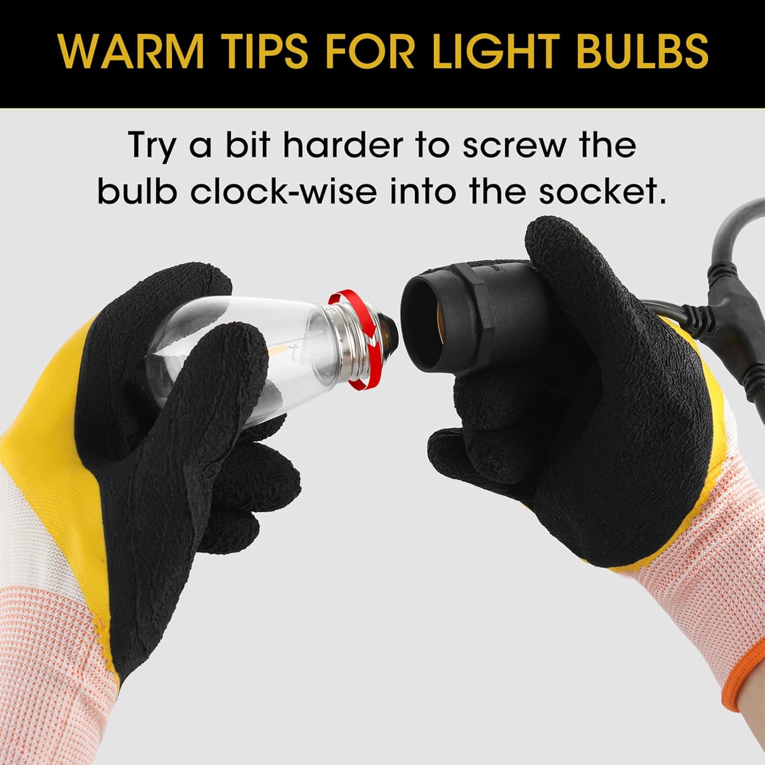 - Warm Tips: Please screw bulbs in tightly. Plug in set and if any bulbs not light, tighten it further.