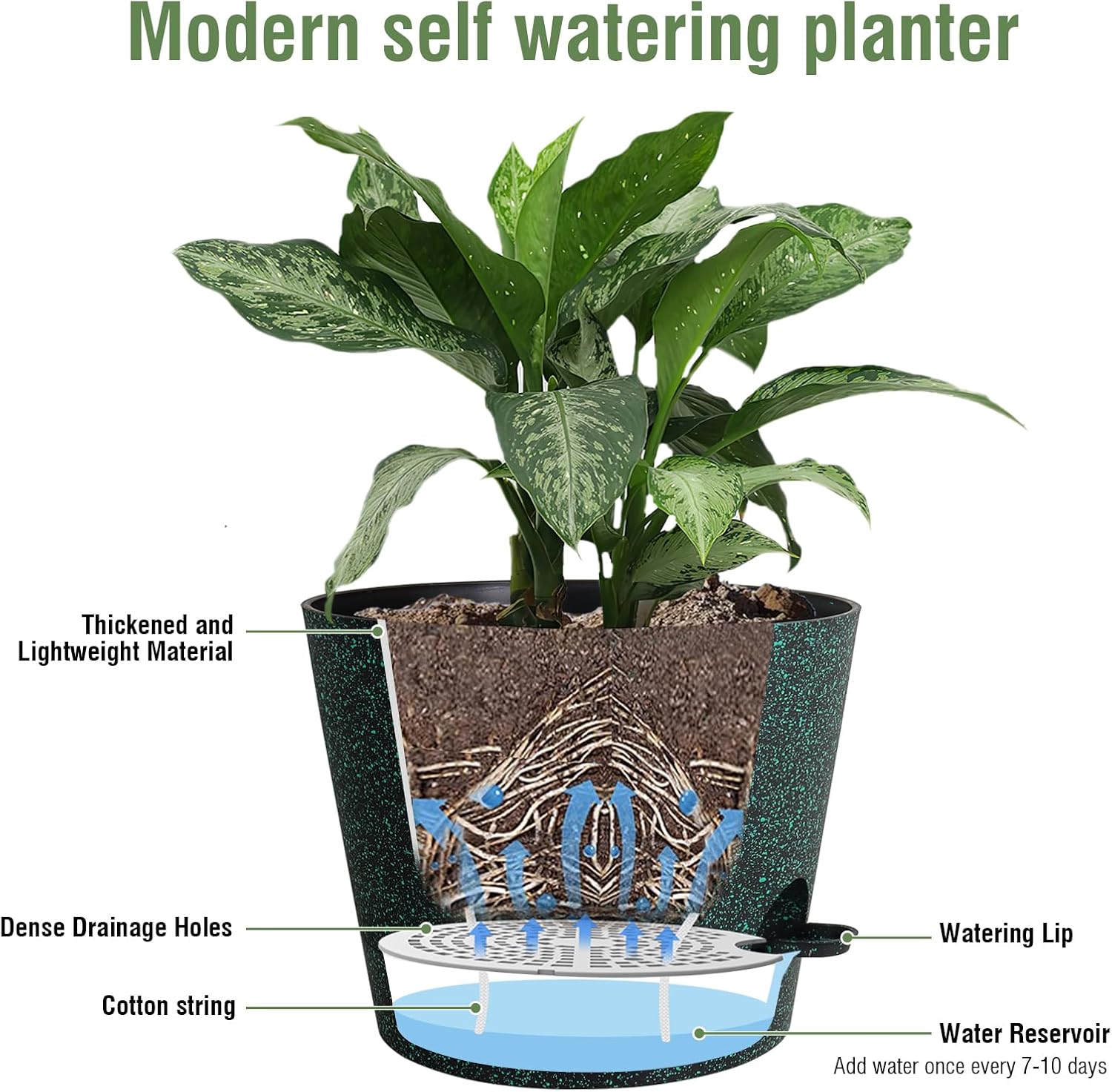 - Special Feature : Drainage Hole, Lightweight, Self Watering