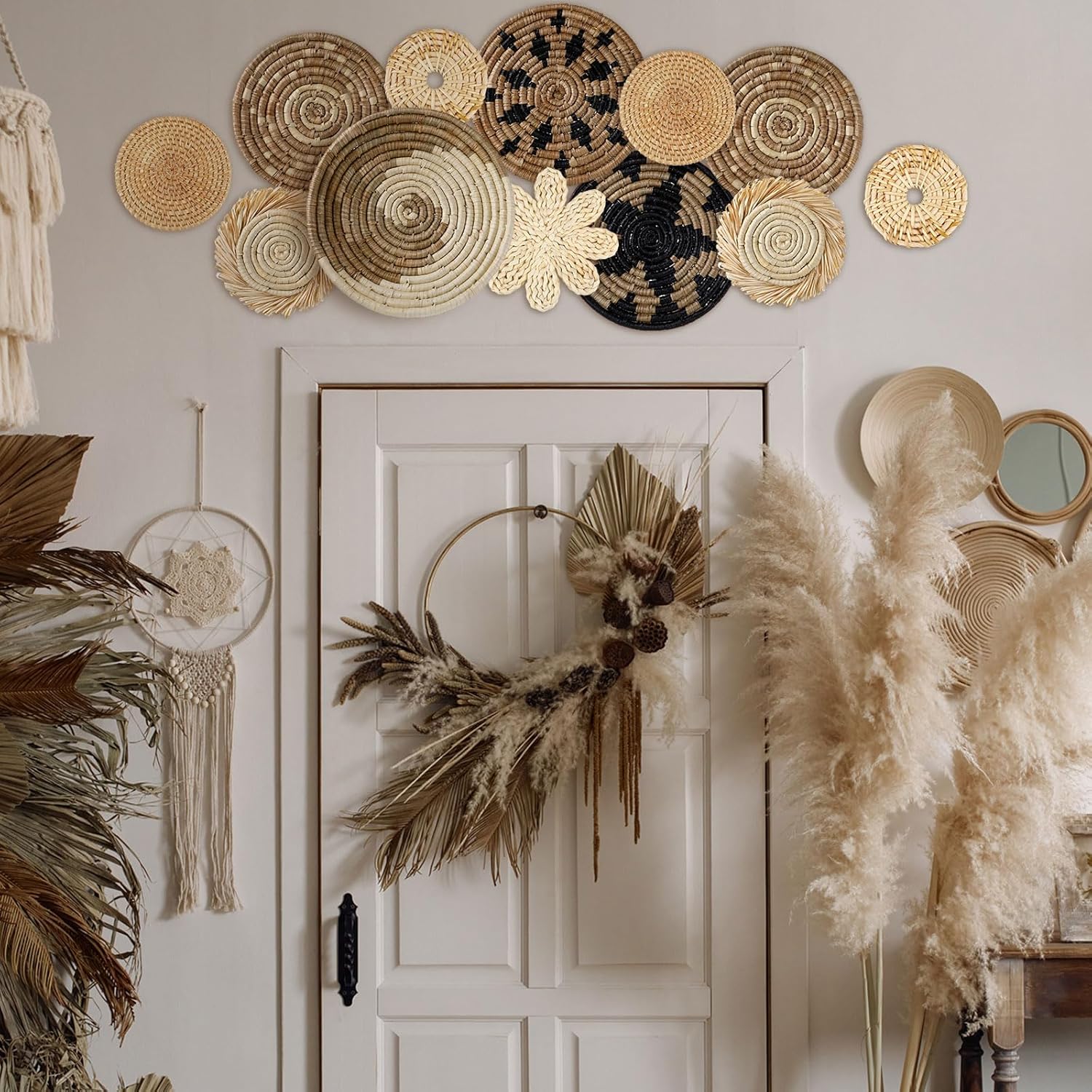 - Wide Applications: boho basket wall decor set as placemats, or as decorative baskets to store toys and accessories, the rustic basket wall art is suitable for many occasions, such as hotels, restaurants, living rooms, bedrooms, schools, stores, offices, dorms, shops,Christmas and more, they bring a comfortable, farmhouse feel to your space, bringing you an elegant and classic feeling