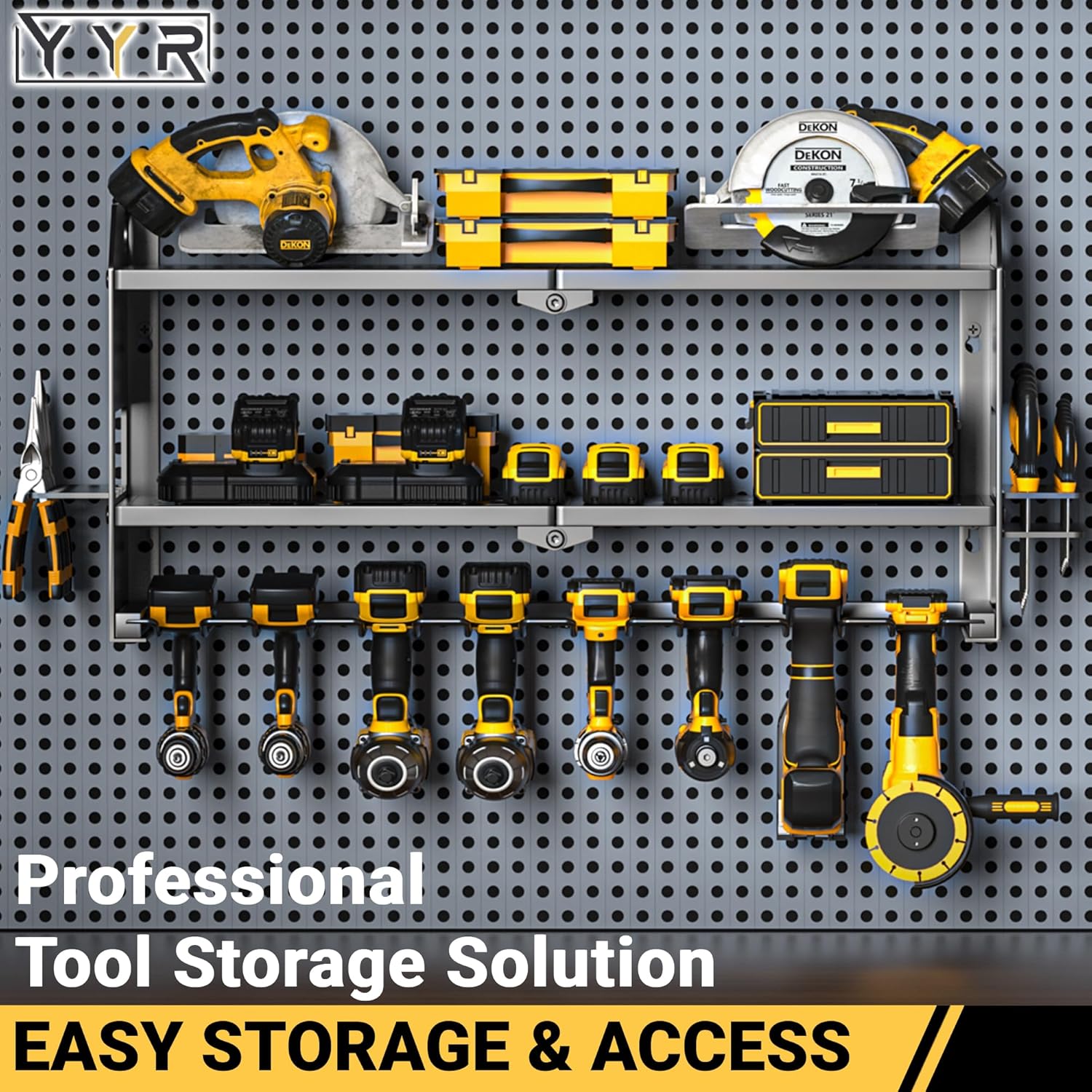 - 【PROFESSIONAL TOOL STORAGE SOLUTION】: YYR cordless tool organizer with charging station take advantage of wasted wall space and keep all of your power & hand tools in one central location so you can easily find them and never waste time searching for them again!