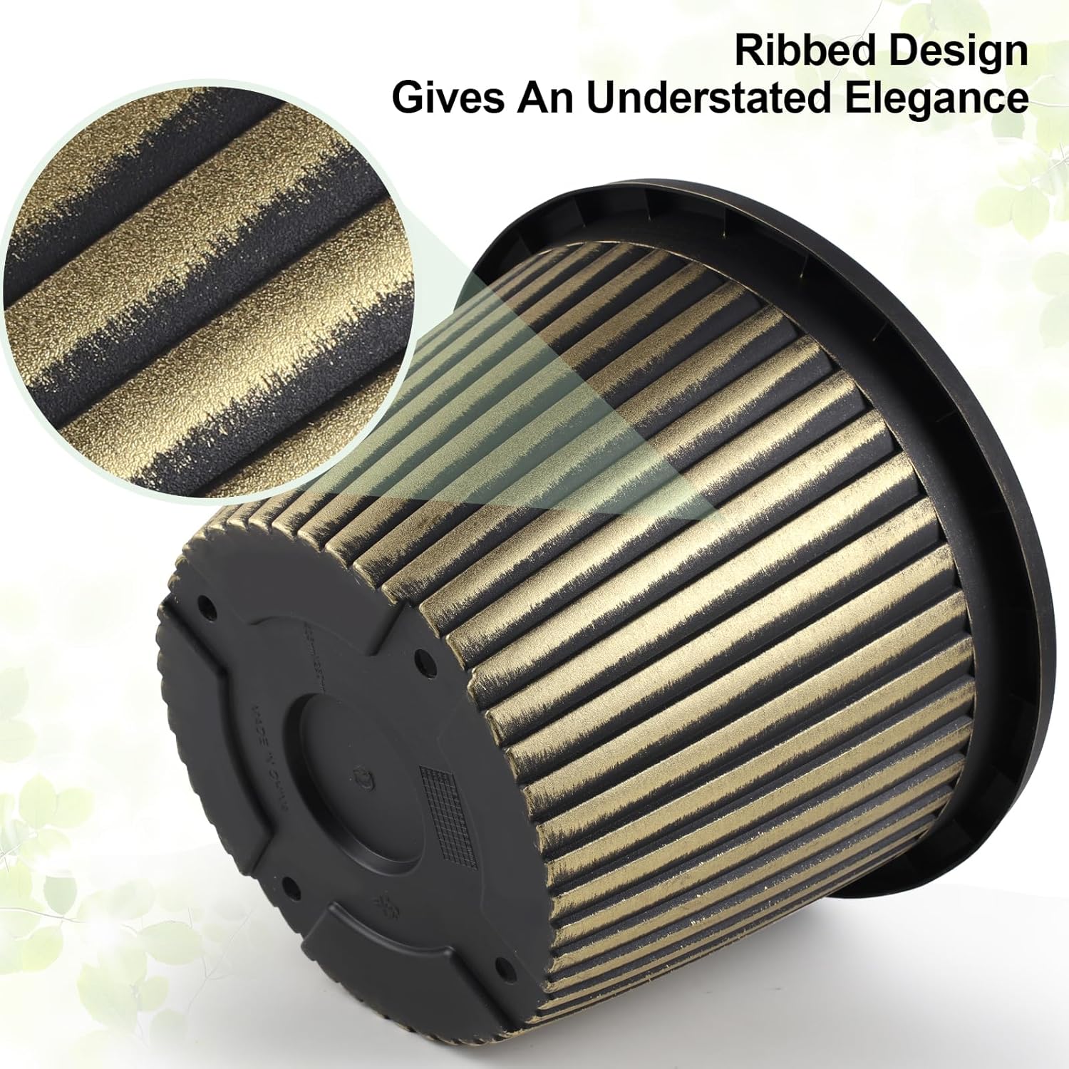 - 【MODERN STYLE PLANTERS】 Indoor planters with saucers provide a unique,nice style in ribbed design which gives an understated elegance that will enhance the beauty of your plant. These 16 inch plant pots are available in red-brown &blue-green & gold finished with a black antique stain. Plastic flower pots would be a beautiful addition to anyone’s deck or sunroom or house!