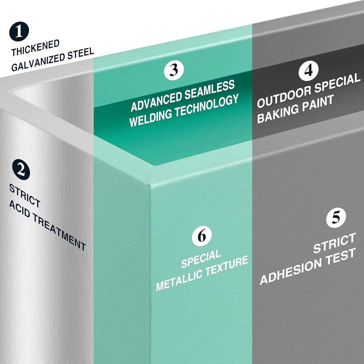 - 【Span Metal Planter】This tall planter box is made from a fully seam welded thick galvanized steel, and adopts outdoor special baking paint, giving the surface a premium metallic color and special texture through the advanced powder injection process.