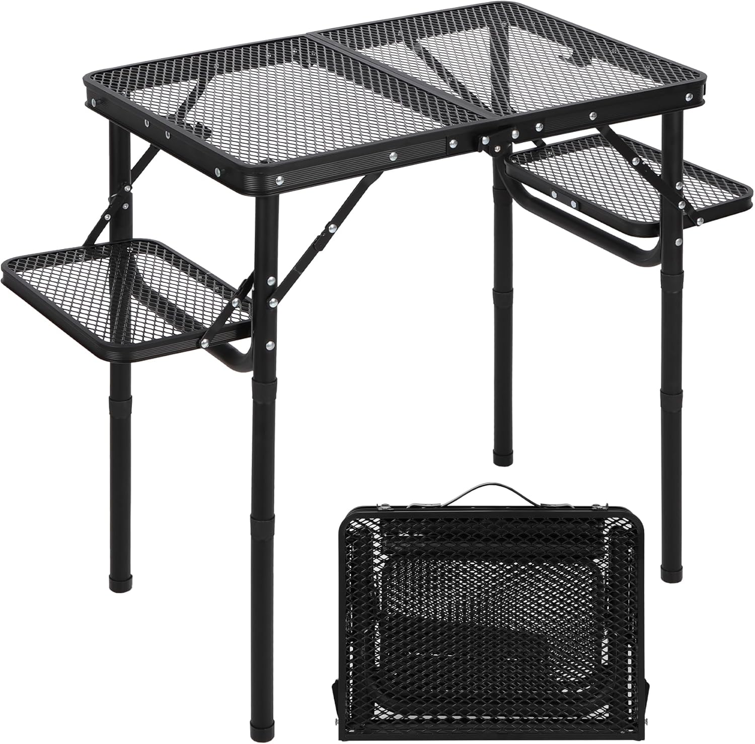RedSwing Folding Grill Table with Extra Space, Adjustable Height Portable Small Stand Table for Outdoor Indoor Camping Picnic BBQ, Black with Side Table