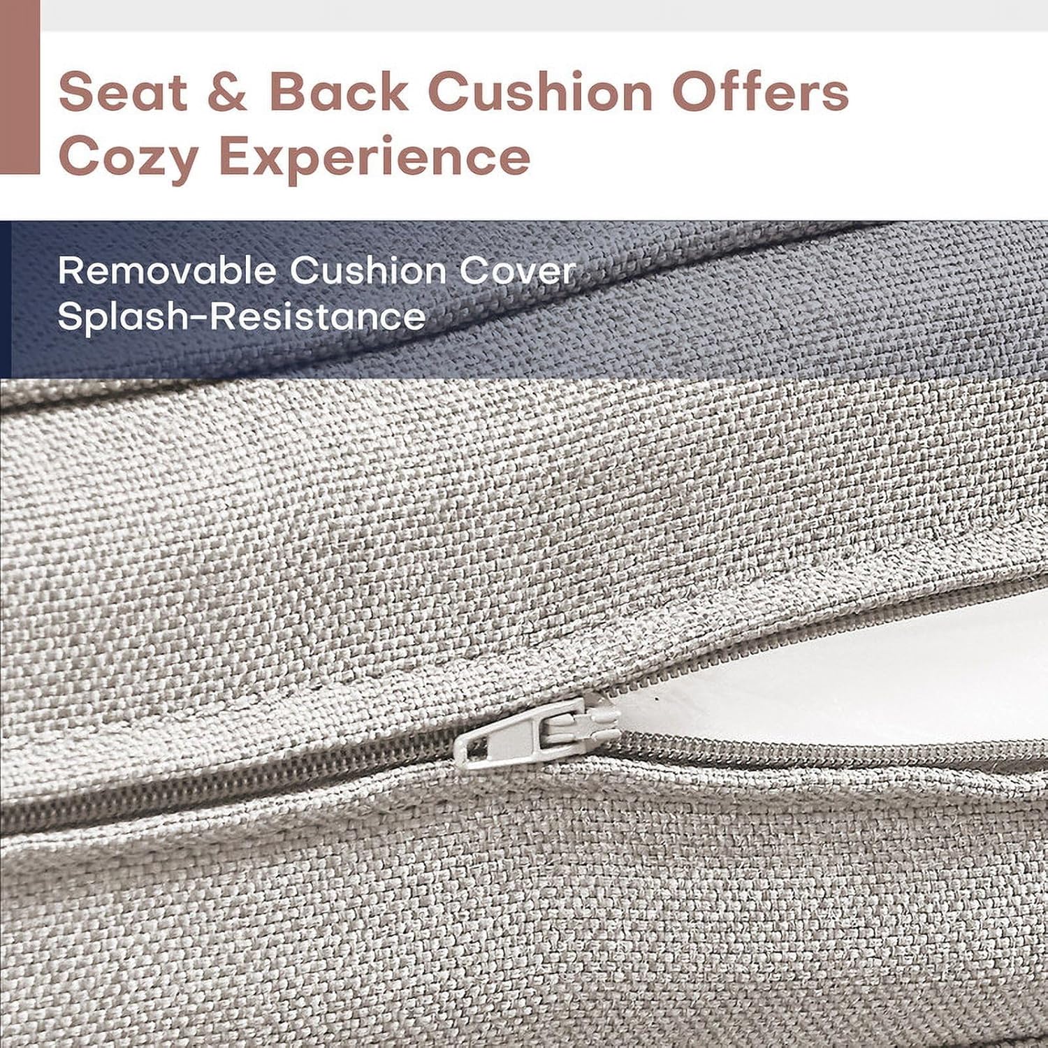 - Comfort Thick Cushions:Our cushions are made of high-quality olefin fabrics that provide excellent UV protection and water repellent function,Filled with a high-density 4" sponge to stay fluffy and non-deformation,Provide soft and comfortable seating experience, removable cover design is easy to clean.