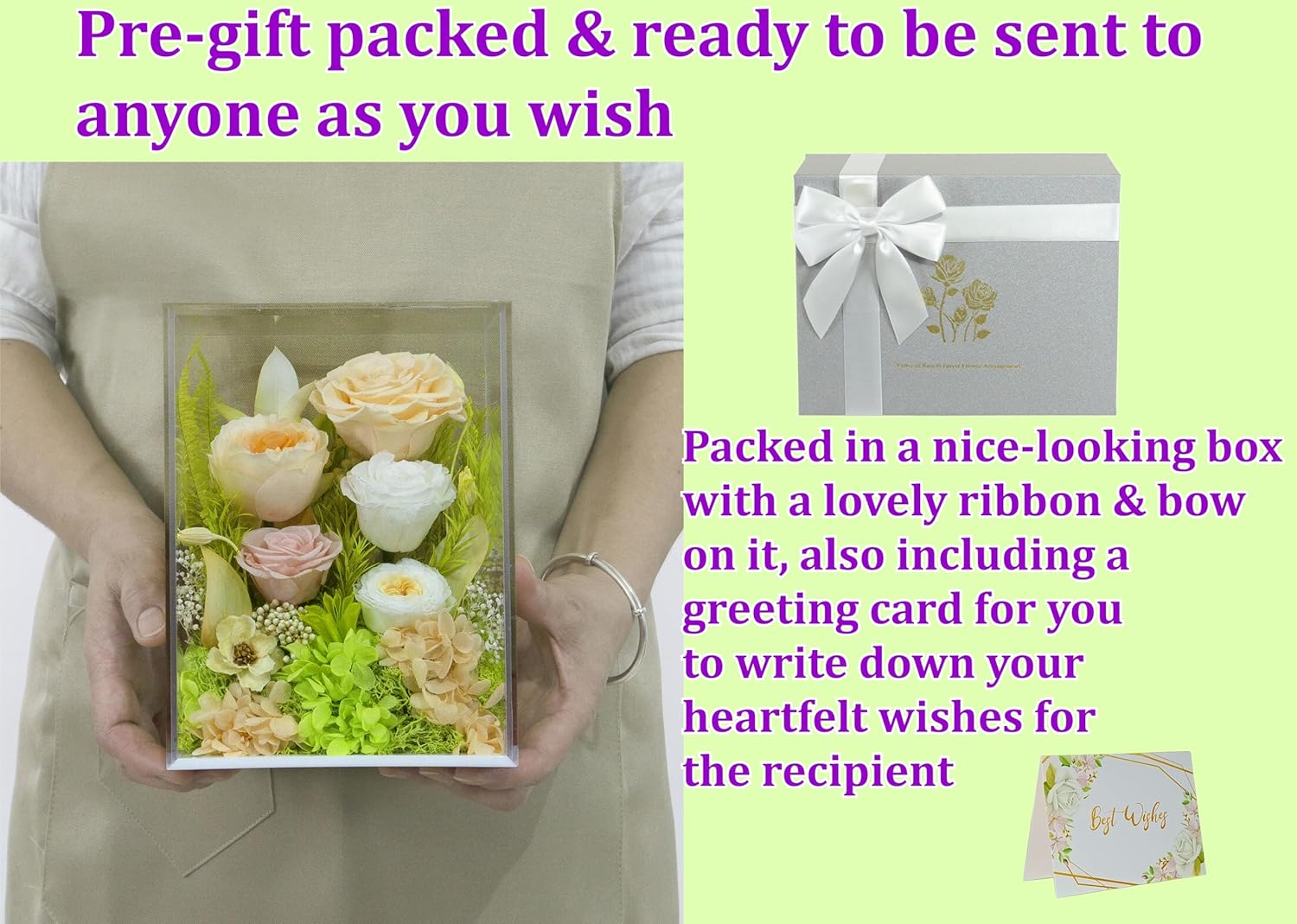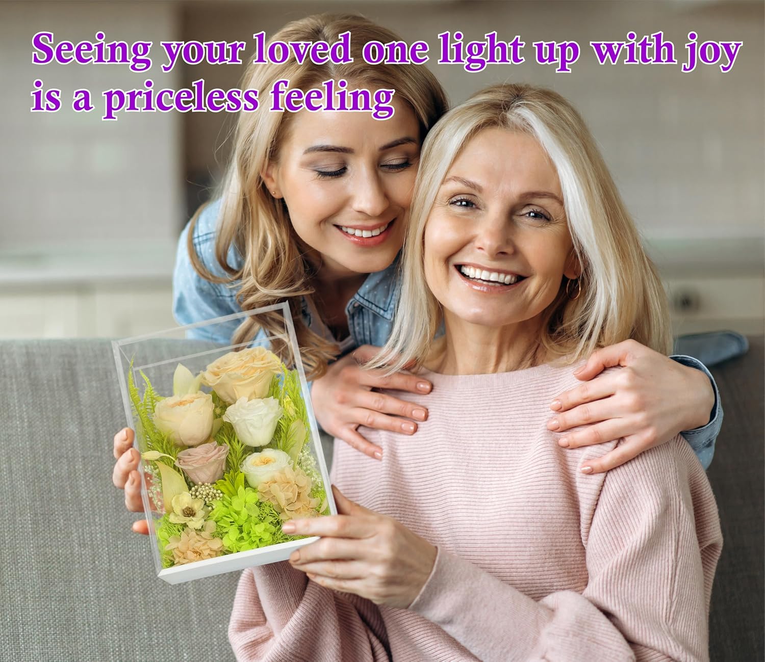 - ♥Natural Flower Decoration Can Do More Than Just Beautify Your Space♥: Having natural flowers in your space not only enhances its appearance but can also have a positive impact on your mood and creativity. The presence of natural elements can make you feel more connected to nature and thus uplift your spirits. Our blooms are natural flowers arranged in a crystal-clear box that can be easily placed and displayed on your table, desk, shelf or wherever you wish to add a natural & beautiful touch.