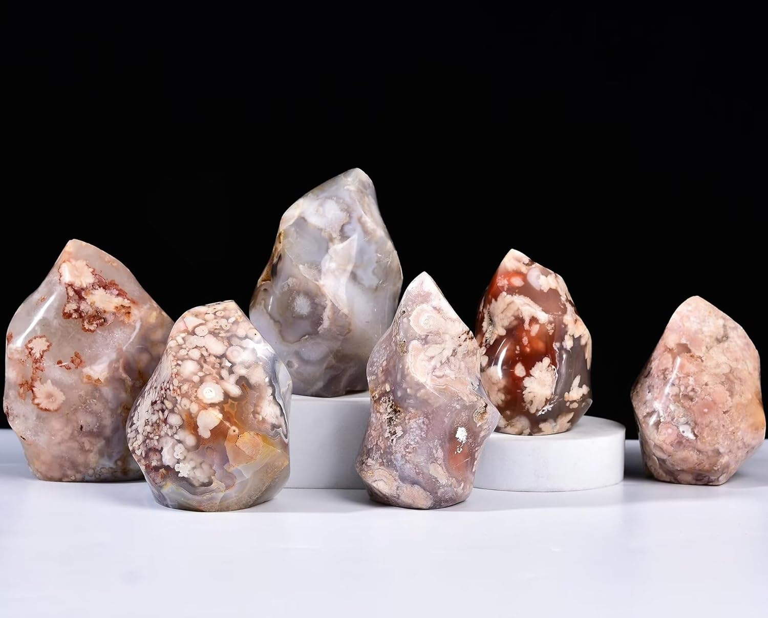 AMOYSTONE Cherry Blossom Agate Flame Shaped Stone Towers Obelisk Flower Agate Natural Healing Crystal Quartz Reiki Energy Decoration Home Office 1.0-1.5LBS