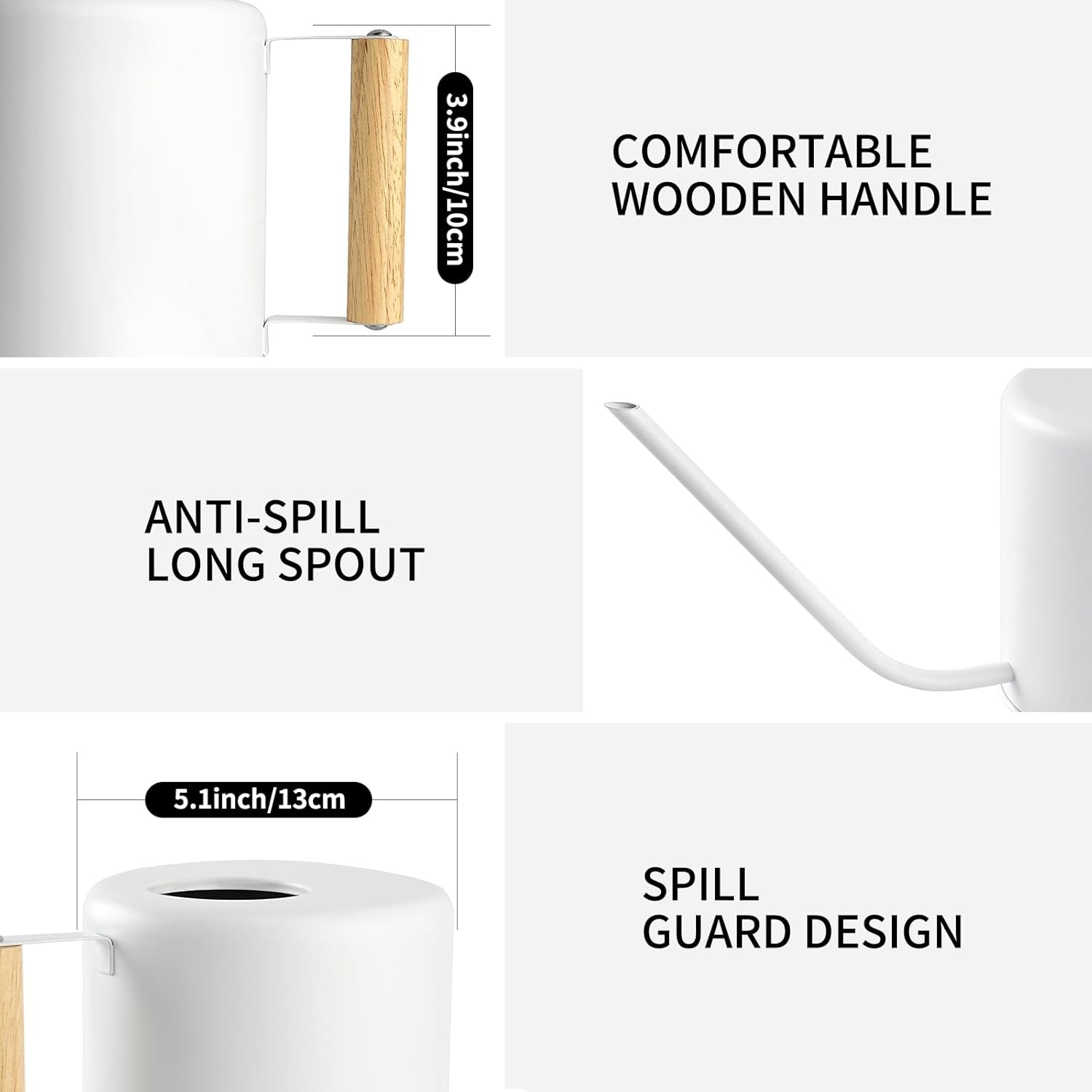 1.5 Liter Watering Can for Indoor Plants, House Plants, Flower Watering, Outdoor Plants - Small Metal Watering Can with Long Spout (White)