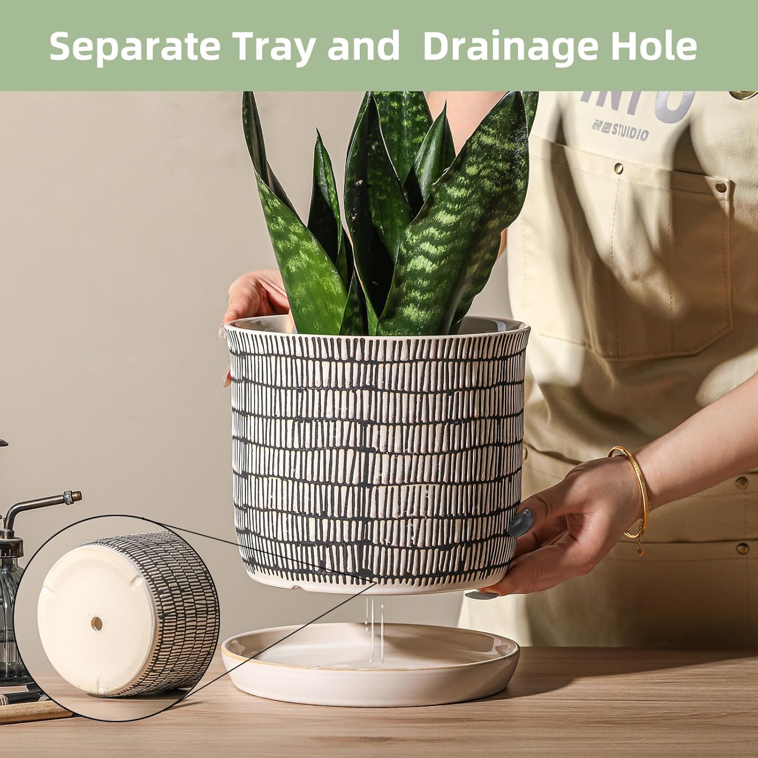 - With Drainage Holes, independent tray: helps to drain excess water and provide suitable humidity for various herbs and succulents. Separate saucer, matched with the flower pot, keeps the desktop clean