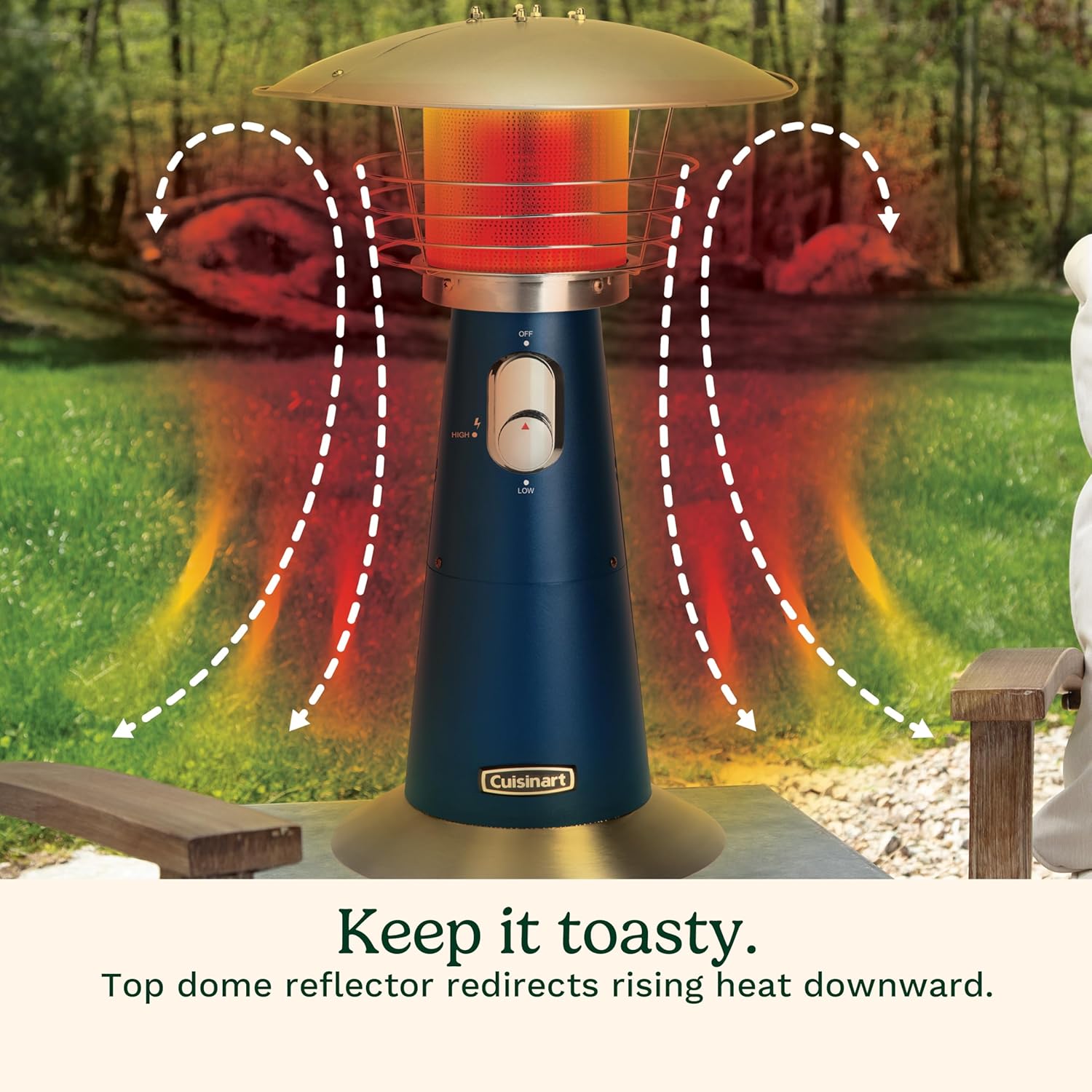 Cuisinart Portable Tabletop Patio Heater, 11,000 BTU Outdoor Propane Heater with Safety Tilt Switch and Adjustable Heat, Burner Screen Guard, 30 sq. Foot Heat Range, Navy