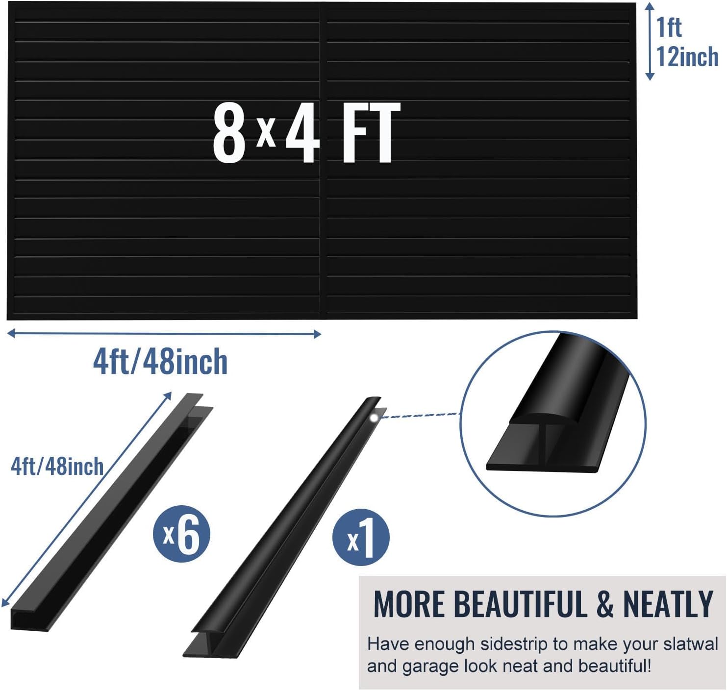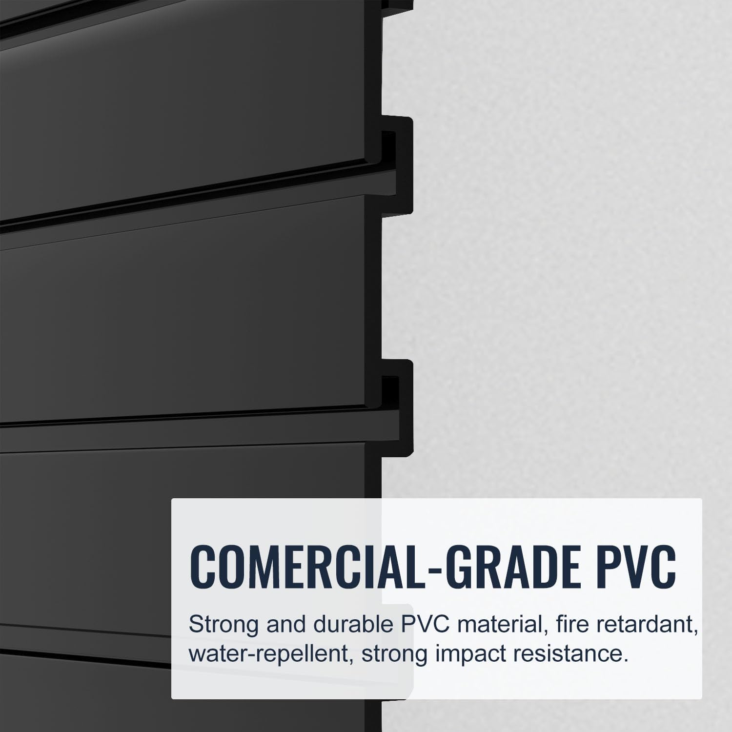 Slatwall Panel Garage Organizer PVC Slatwall Heavy Duty Wall Mounted Rack, Interlocking Slat Wall Panels for Tool Organization Peg Board (Black 4 x 8 ft)