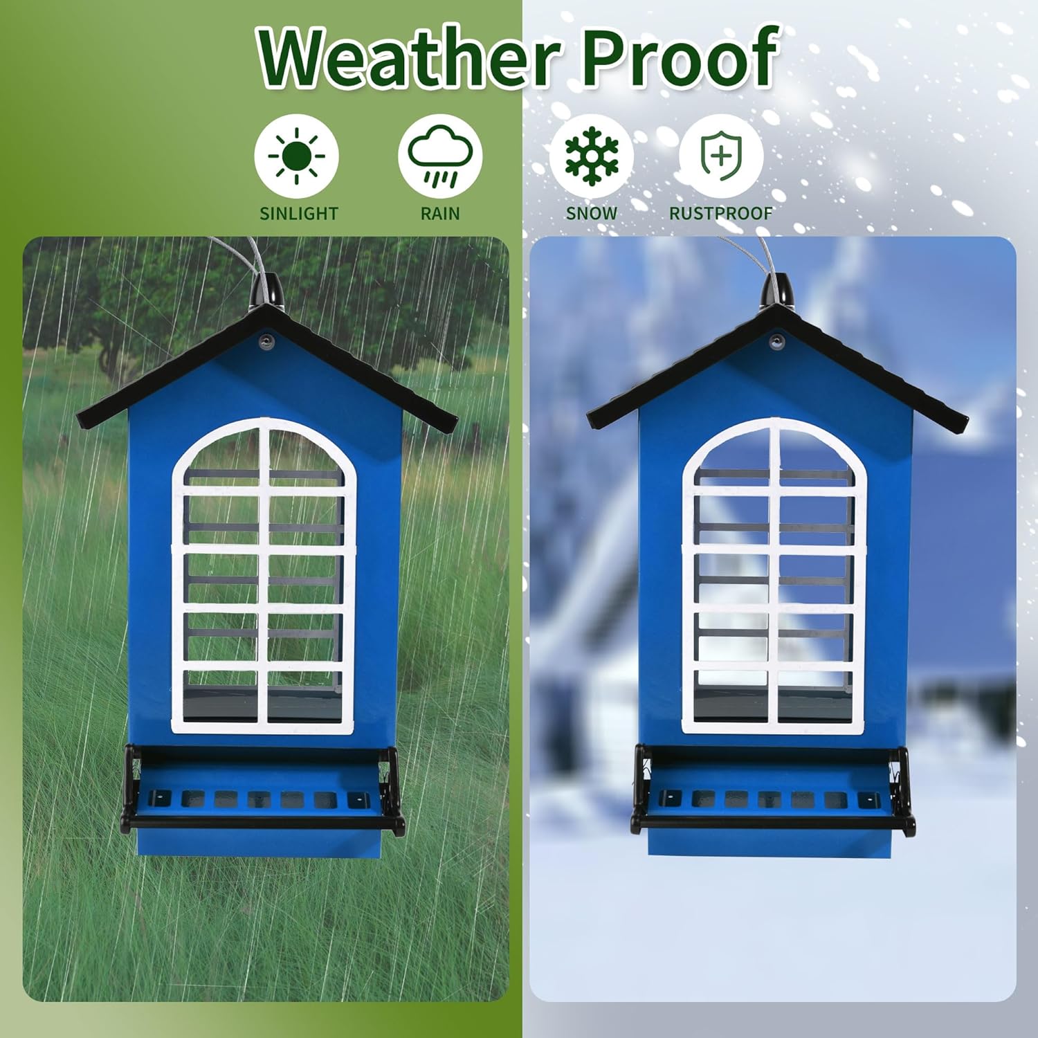 - 🐦The detachable roof and large opening make this bird feeder squirrel proof easy to fill with seeds, and the transparent window also allows you to monitor whether the seeds are sufficient at any time. Cleaning is also very simple, just remove the cover and rinse with water directly!