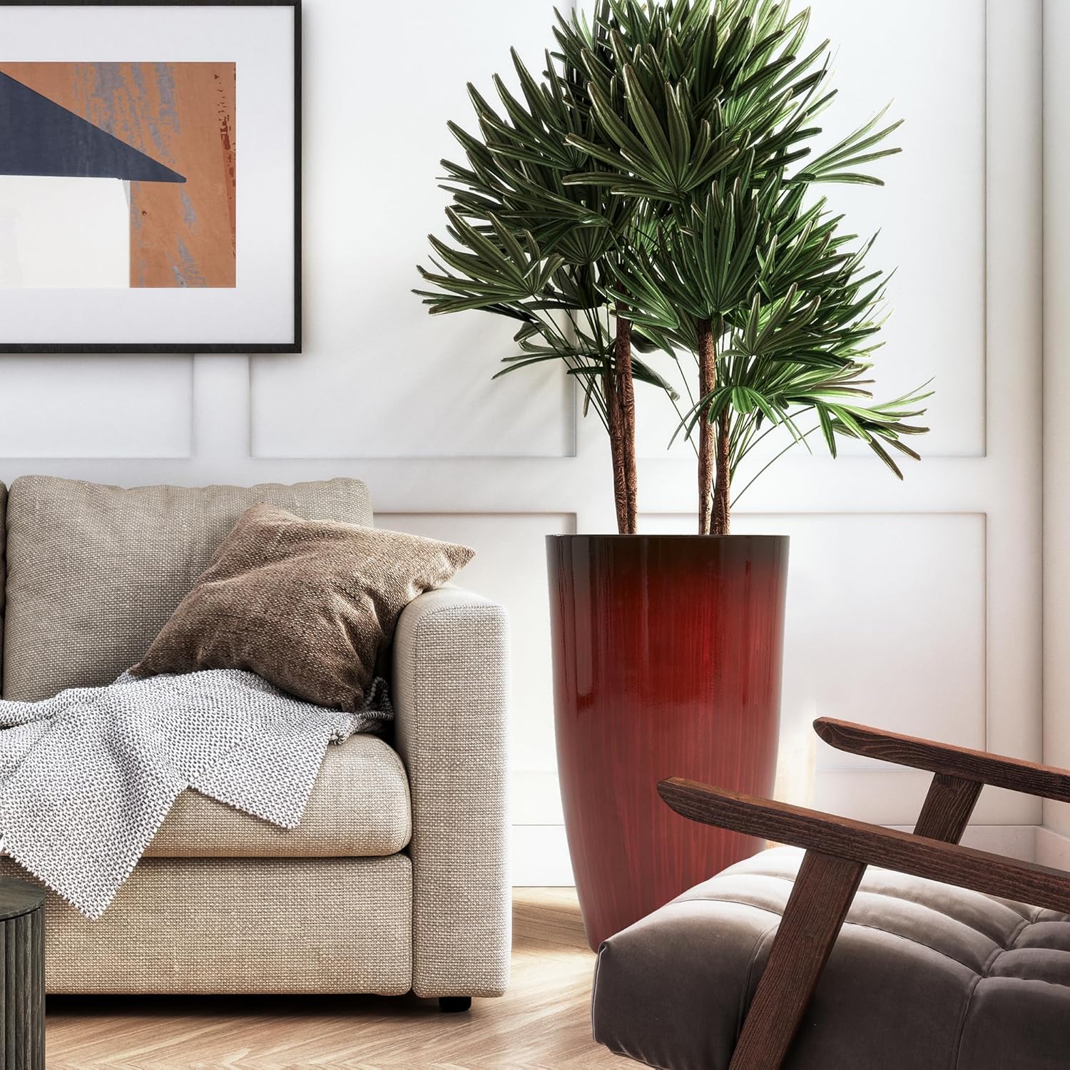 Worth Garden 23.5" H. Large Plastic Planters - Set of 2 Gradient Red Glossy Smooth Finish - Tall Plant Pots for Indoor & Outdoor Use - Decorative Lightweight Flower Pots for Front Porch, Patio, Deck