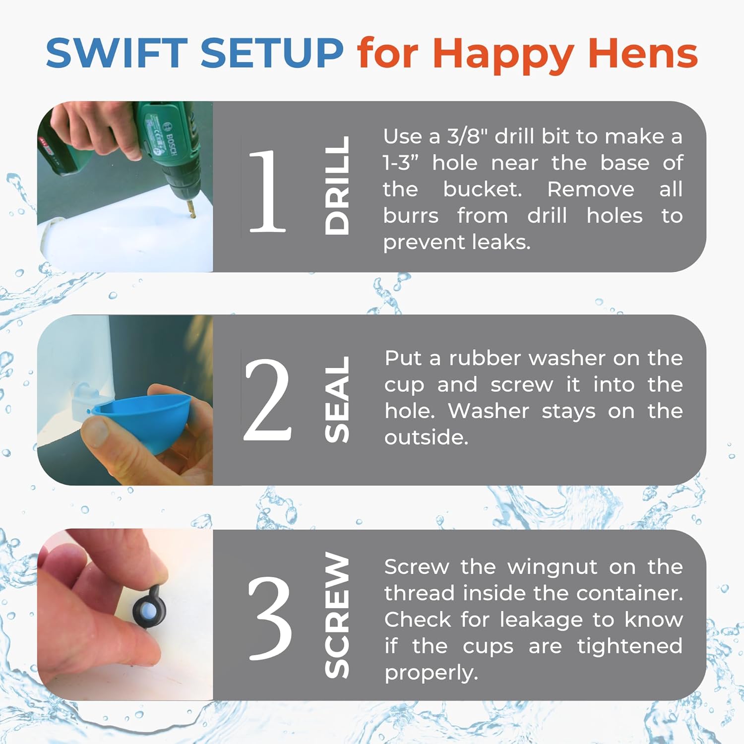 - Time-Saving Design for Busy Poultry Keepers β Spend less time refilling and more time enjoying your flock! These automatic chicken waterer cups provide a consistent water supply, reducing the need for constant monitoring. Ideal for those with larger flocks or busy schedules.