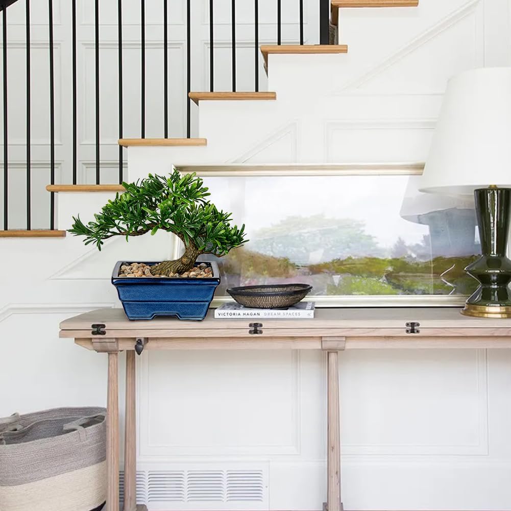 - BONSAI TREE WITH CERAMIC POTS - Artificial potted plants made of high quality PE material, non-toxic, no odor, durable, healthy and environmentally, Vivid color design and high simulation make small fake plant decor very layered and attractive. Mini bonsai tree not only a good home decorations, but also a good gift to your friends. Surprise someone special with one of our most popular artificial pine tree!