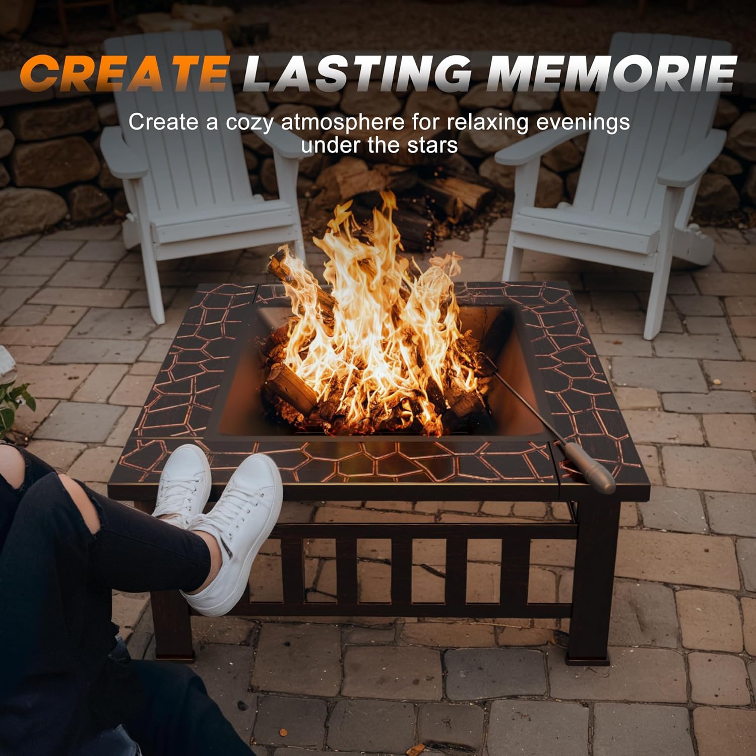 - [ Reliable Security ]: Firepit table features square design with sturdy legs for stability, while the mesh spark screen and poker provided effectively prevent sparks from flying and safely move the grill.