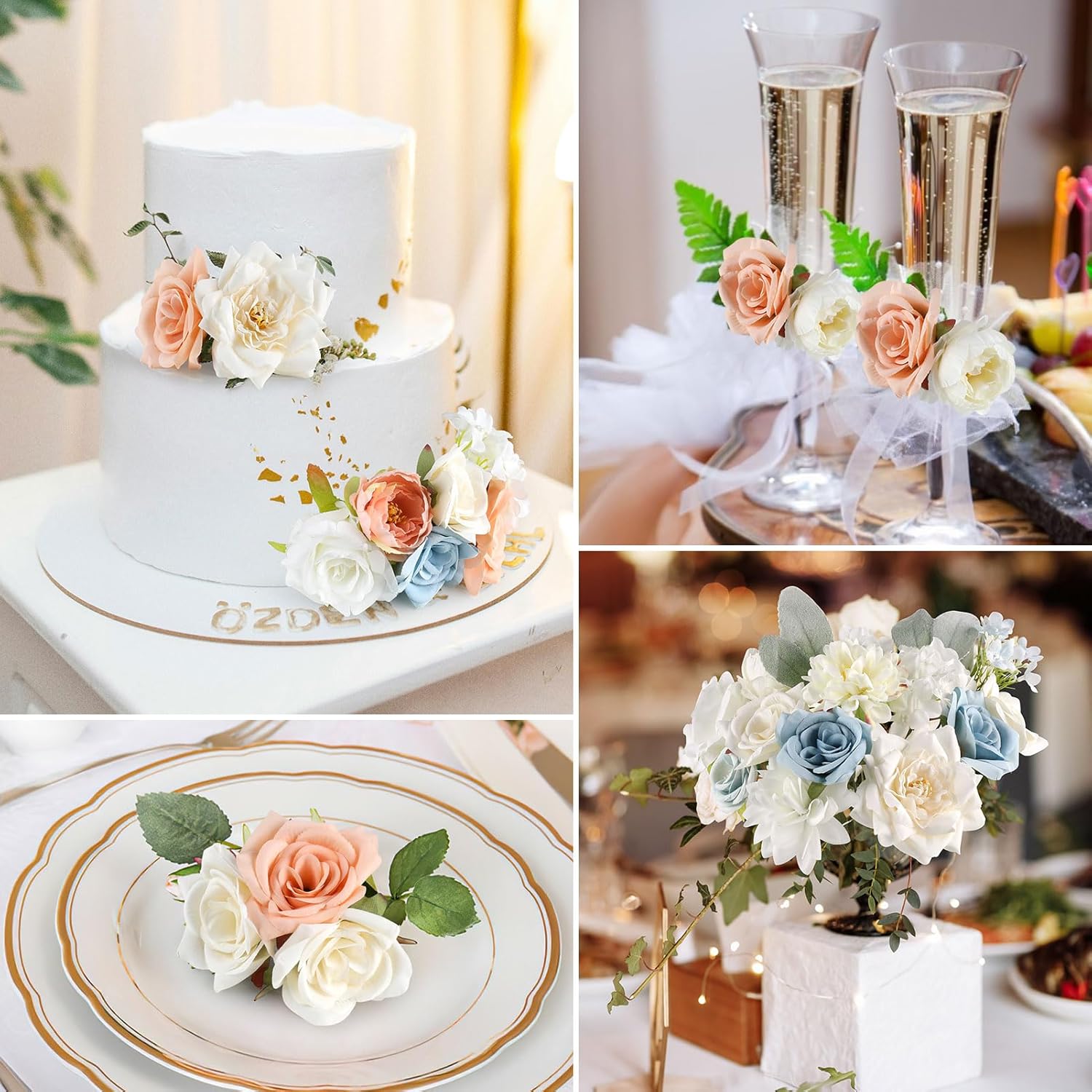 - 【Multiple Uses of Artificial Flowers】Faux flowers artificial flowers can be used as cake flowers decorations, bridal bouquet flowers, silk flowers for wedding, kissing balls, boutonnieres, flower arrangements, DIY garlands or any other flower decorations that can be used anywhere you want to decorate, weddings, parties baby shower stage, living room, bedroom, park, office, restaurant, patio, store and home decor.